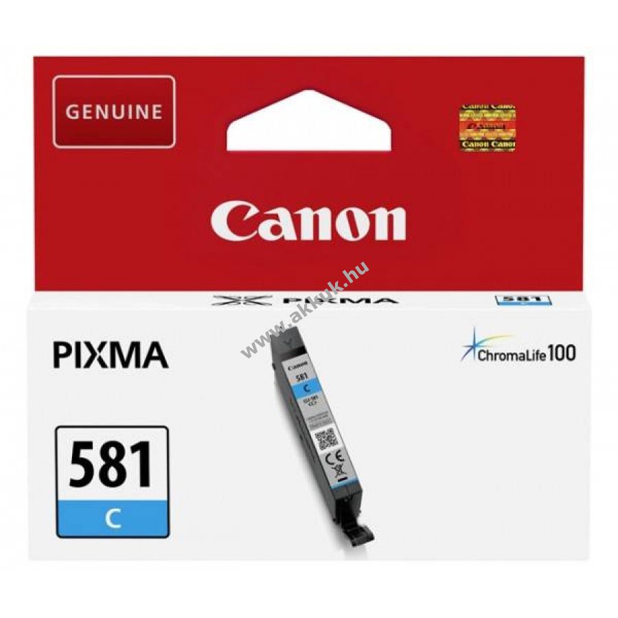 Eredeti Canon CLI-581C 5,6ml cián tintapatron kiváló és tartós nyomatokat biztosít, nagy megbízhatósága kizárja a maszatolást, szivárgást és a patronok meghibásodását.