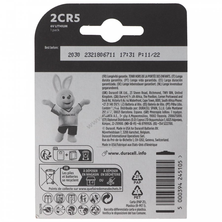6V 1400mAh/8.4Wh Li-Ion Duracell Szavatosság (további részletek)