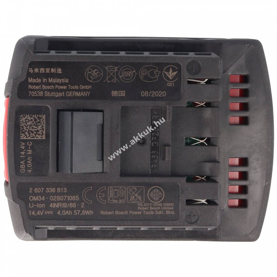 14.4V 4000mAh/57.6Wh Li-Ion 99mm x 74mm x 61.5mm 518 gr. BOSCH 1 év jótállás (további részletek)