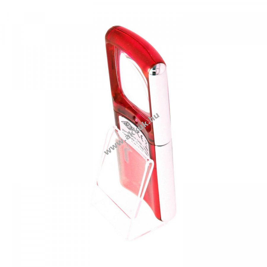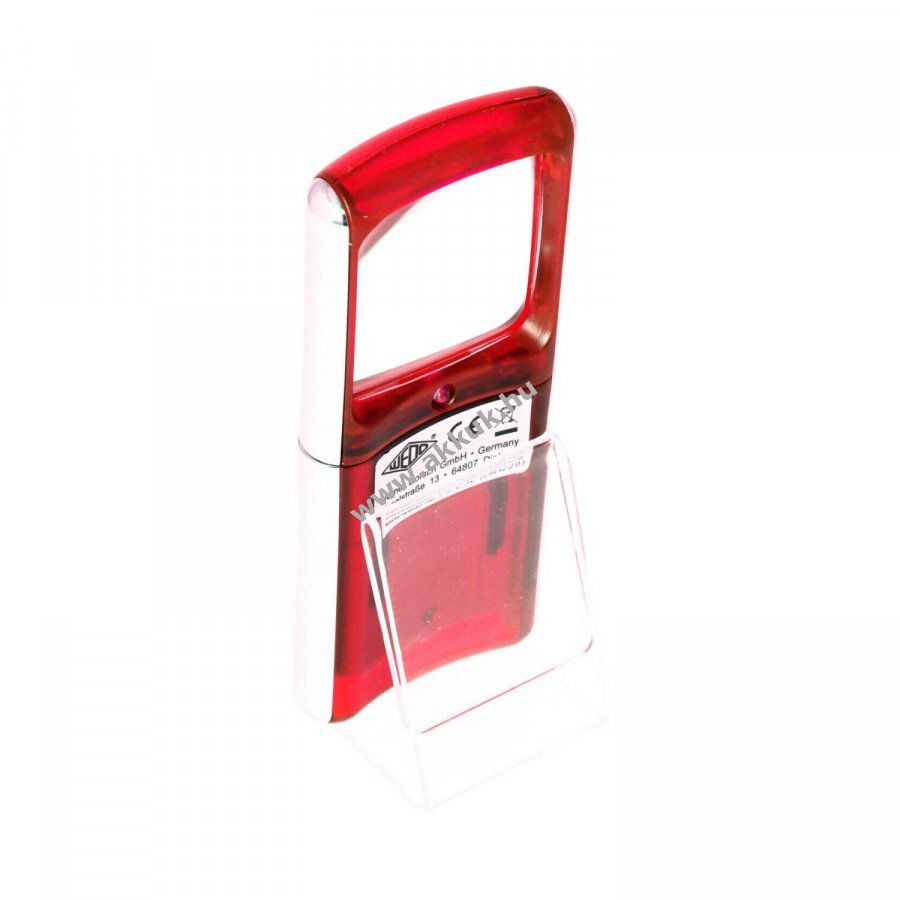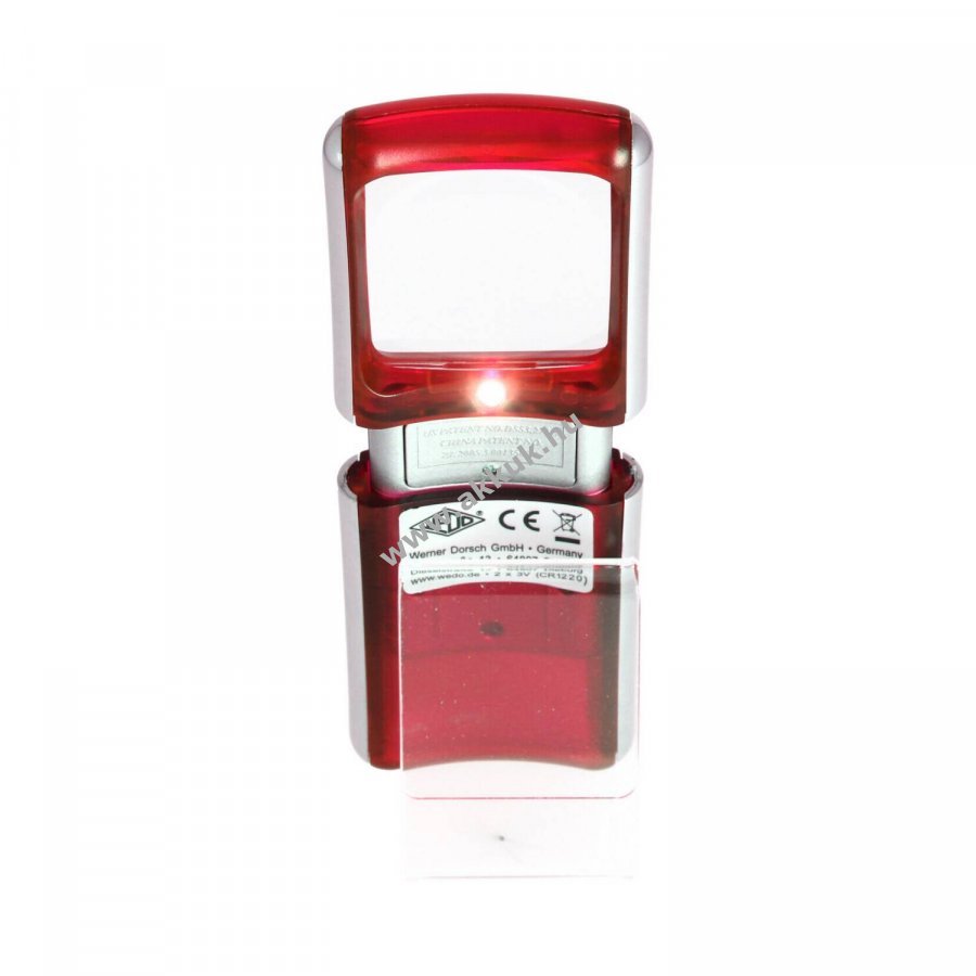 WEDO kézi LED nagyító 3x nagyítással, piros matt házzal. Kompakt, zsebméretű kialakítás a csomag 2db CR1130 3,0V lítium gombeleme(ke)t tartalmaz.