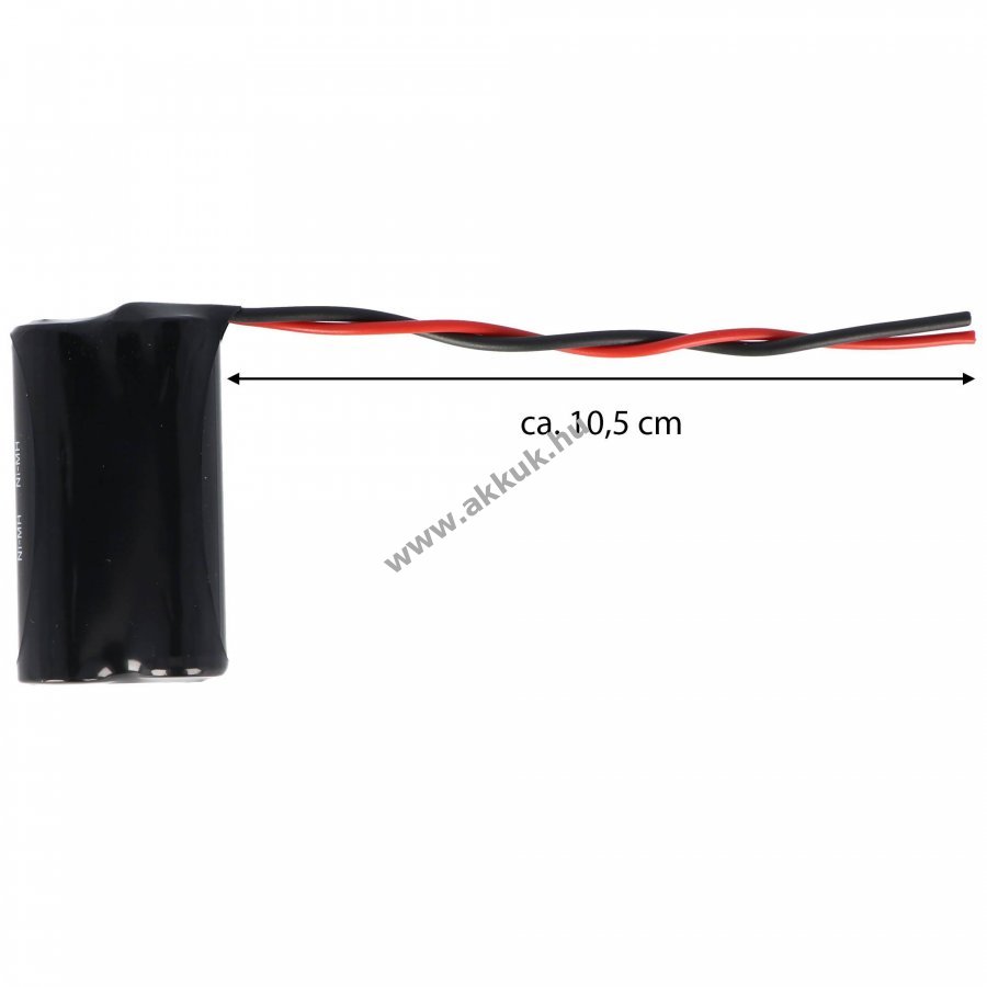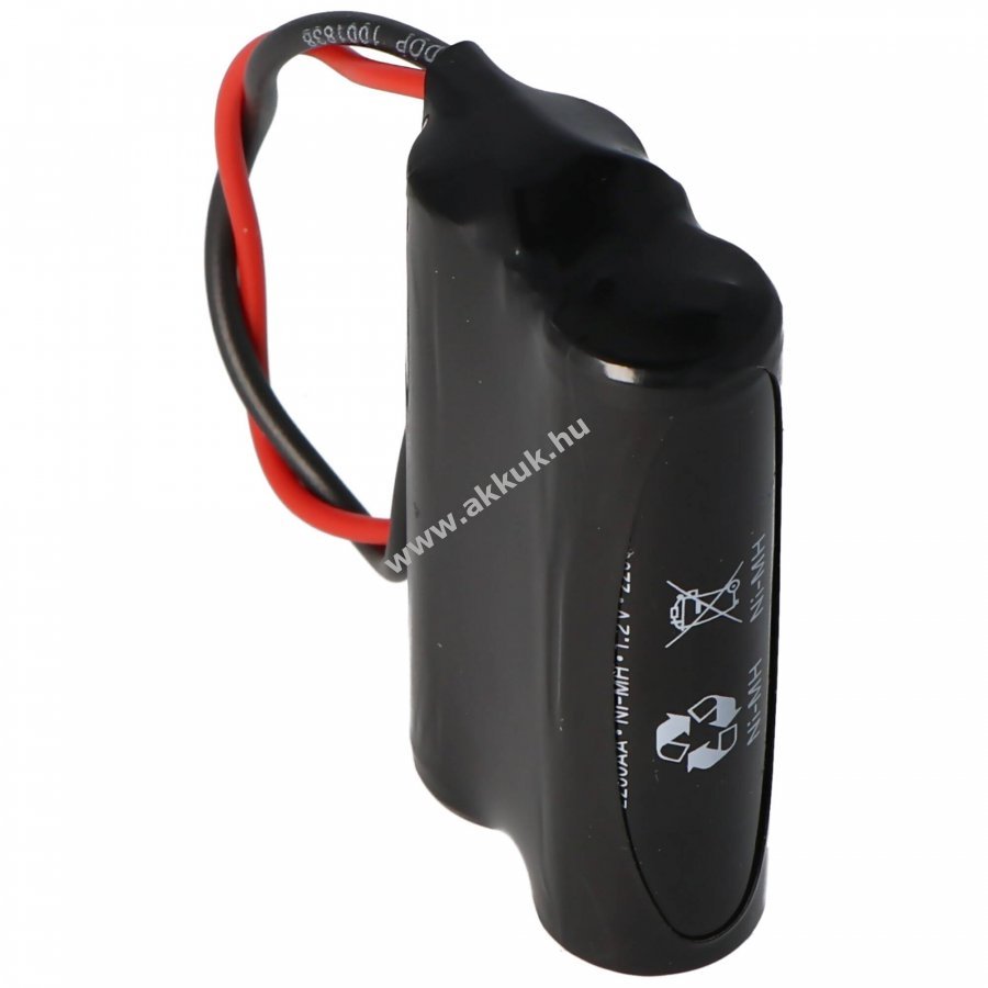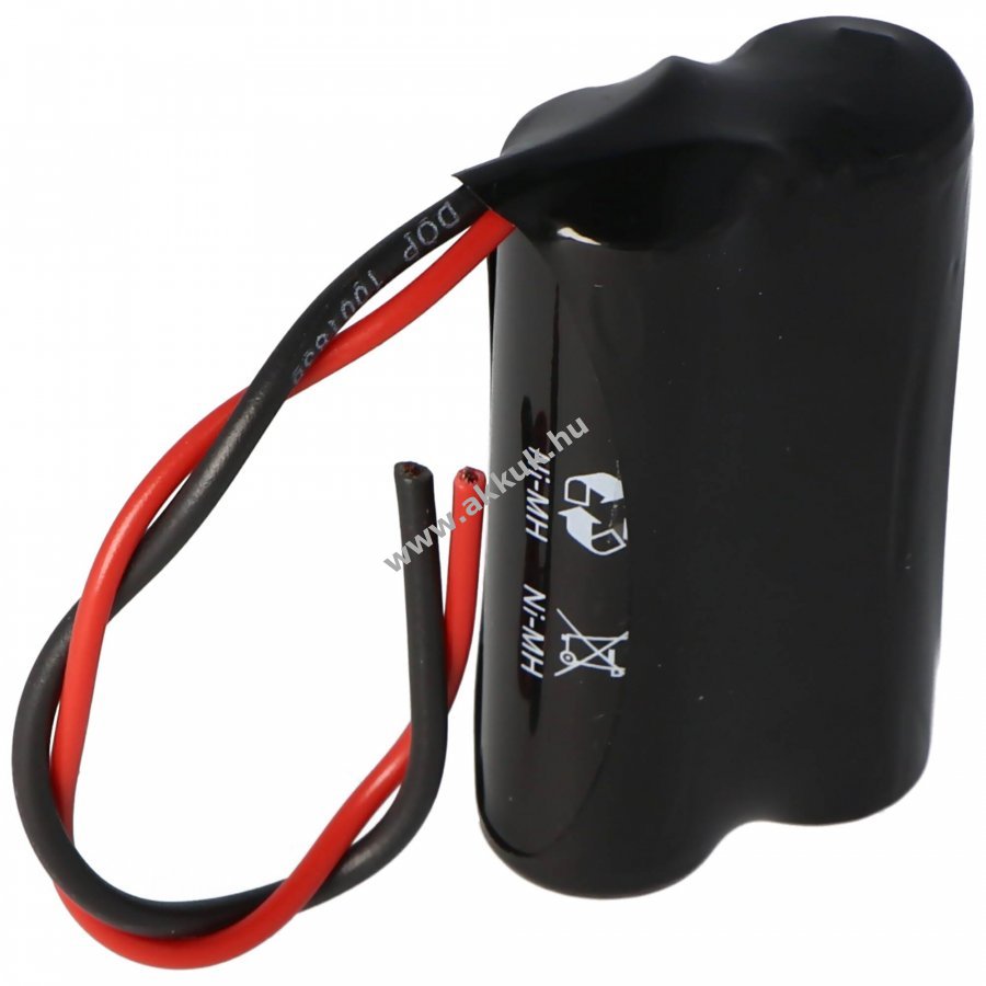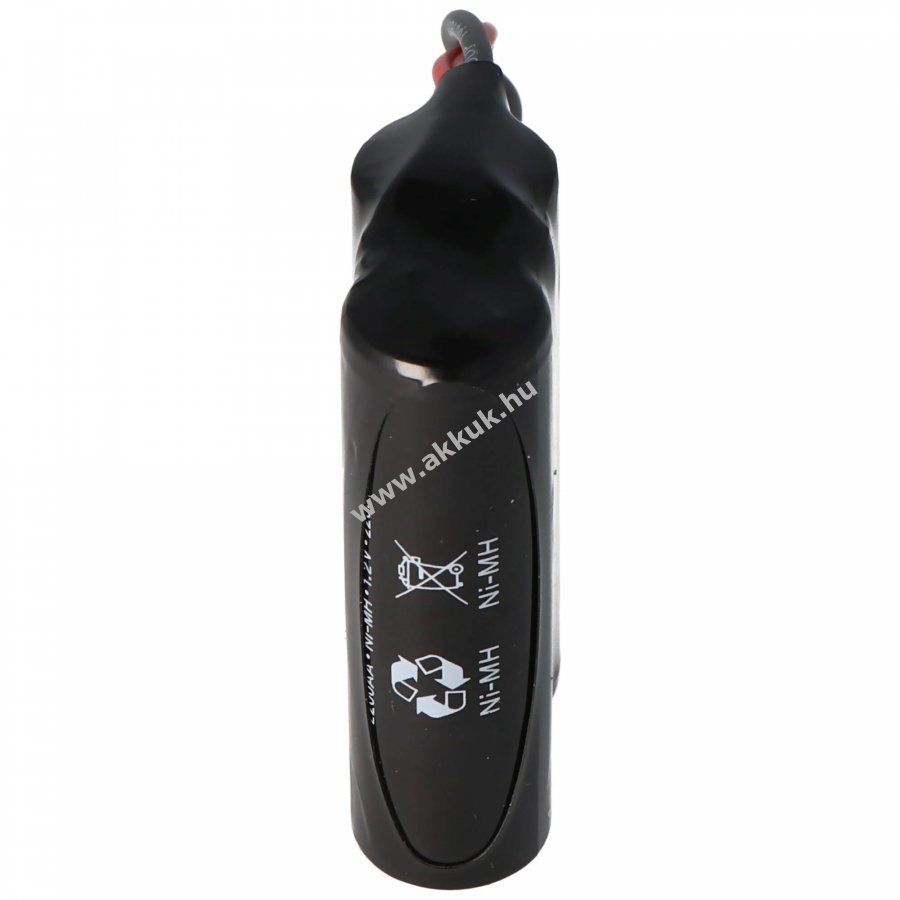 Friss gyártású NiMH akkupakk Mignon ceruza méretben, 2,4V feszültséggel és 2200mAh kapacitással, 100mm kábellel. Méretek: 50x28x15mm