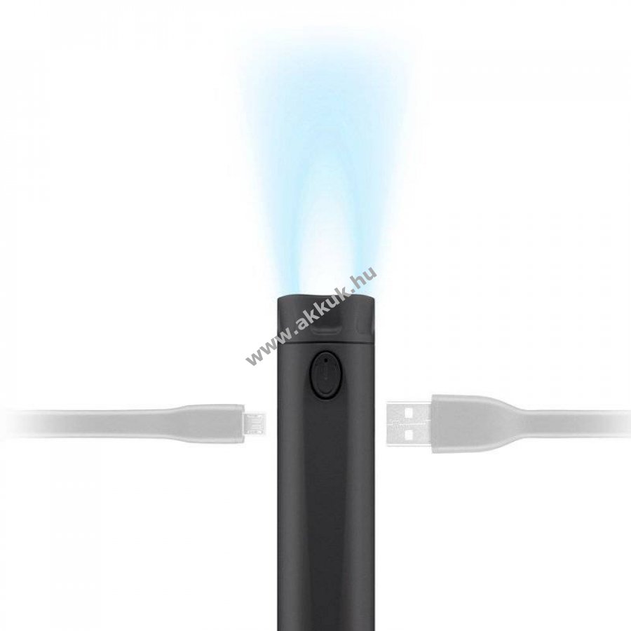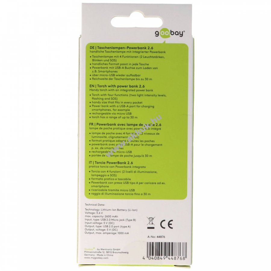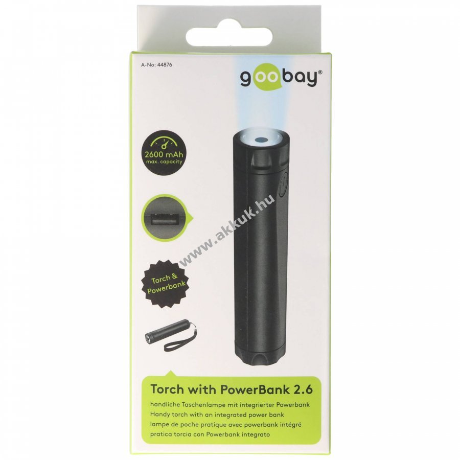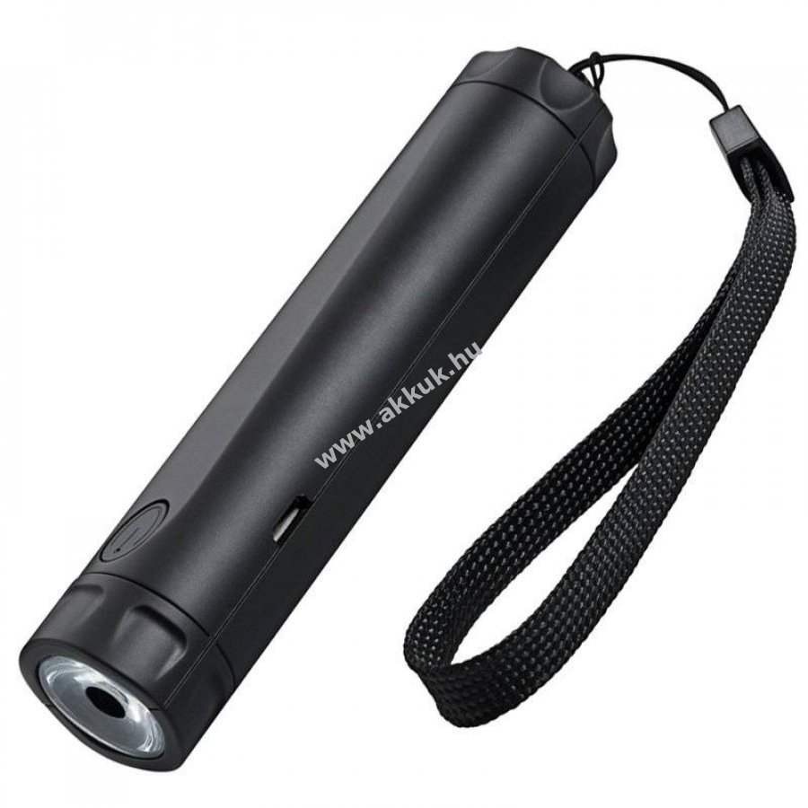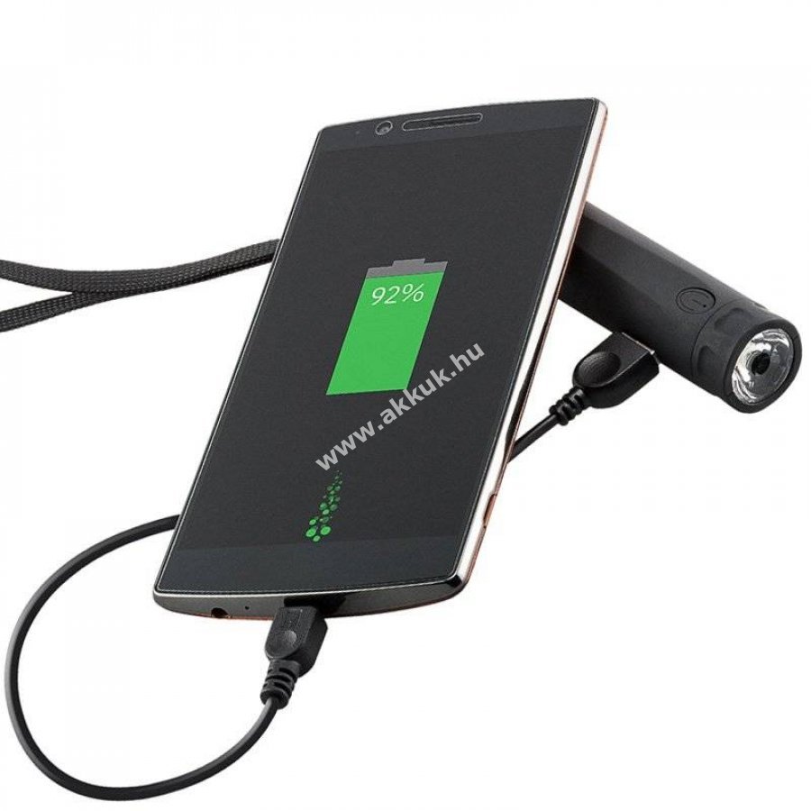 Kompakt powerbank 2600mAh kapacitással és beépített 1W LED zseblámpával, 2 fényerőszinttel, villogó és SOS móddal, könnyű, zsebbarát kialakítás