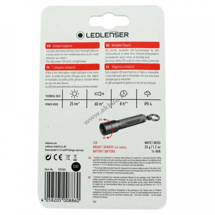Kompakt, extra kisméretű LED zseblámpa erős, fehér LED-fénnyel és fókuszálható fénykúppal. Masszív, repülőgépipari alumíniumház ütésálló és fröccsenő víz ellen védett. Működtethető Micro AAA LR03 1,5V elemmel vagy 1,2V NiMH AAA HR-4 akkuval. Ideális műszaki meghibásodás, veszély- és vészhelyzetek esetén.