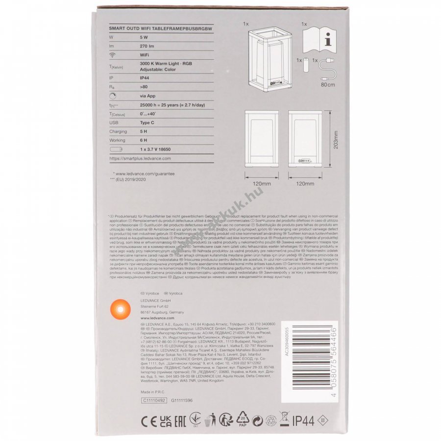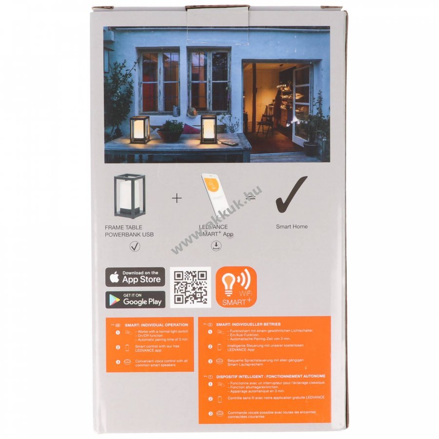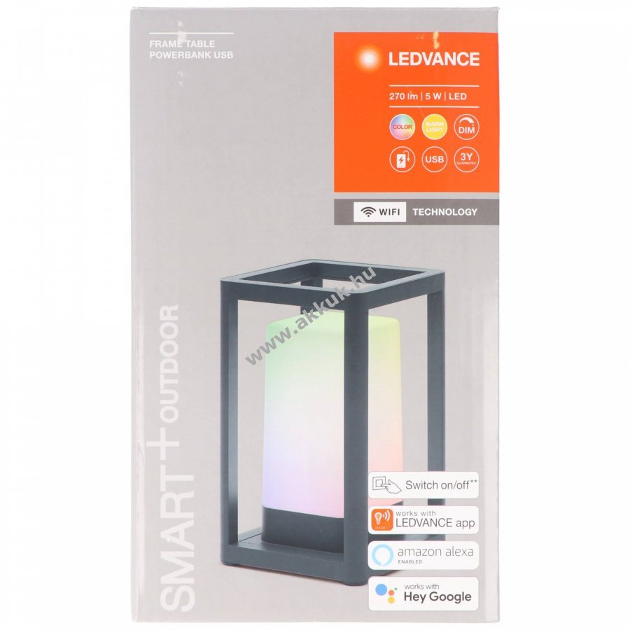 LEDVANCE Smart+ WiFi kültéri akkus asztali lámpa RGBW színmódokkal, beépített USB töltéssel és powerbank funkcióval, IP44 védettség, sötétszürke