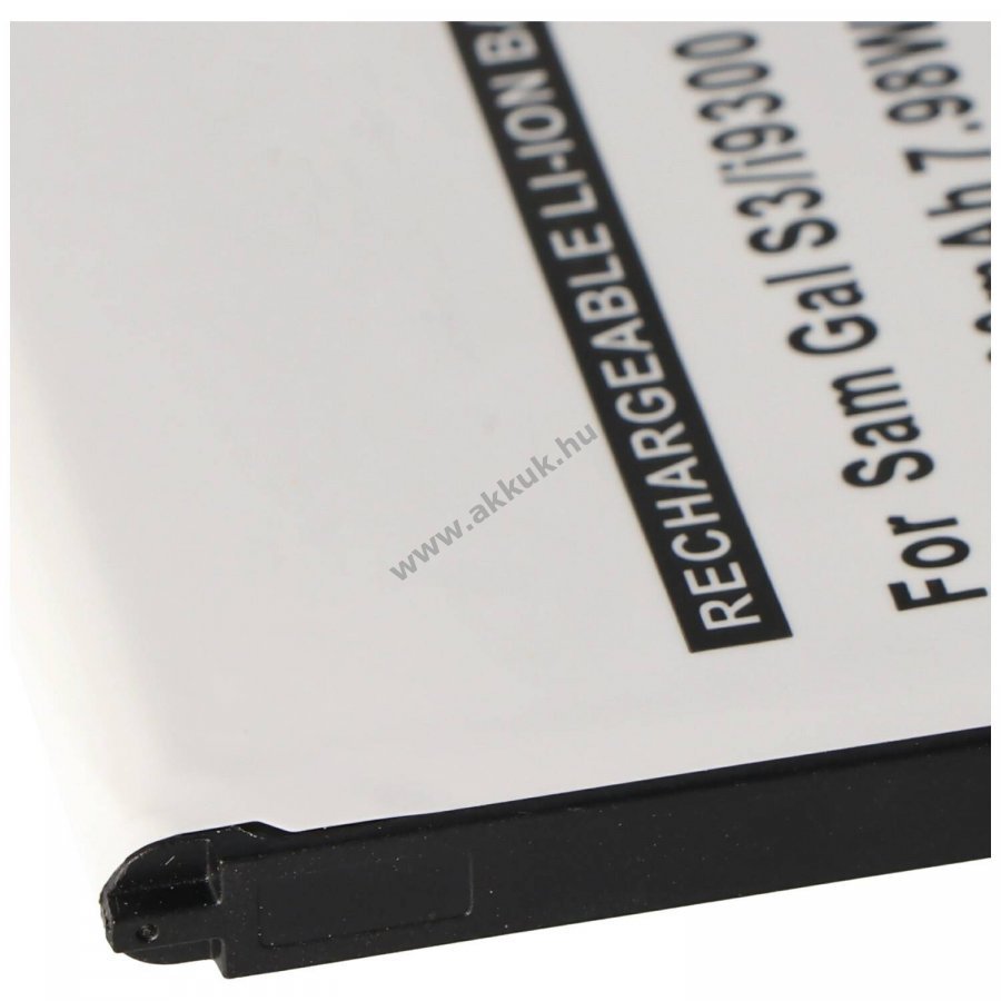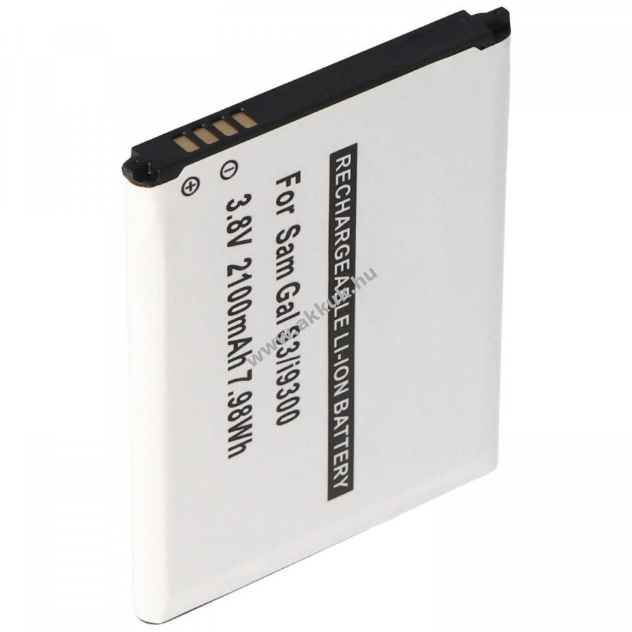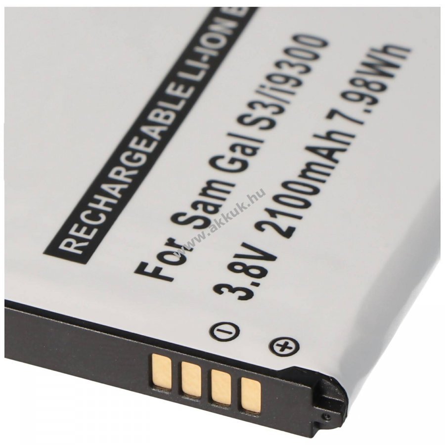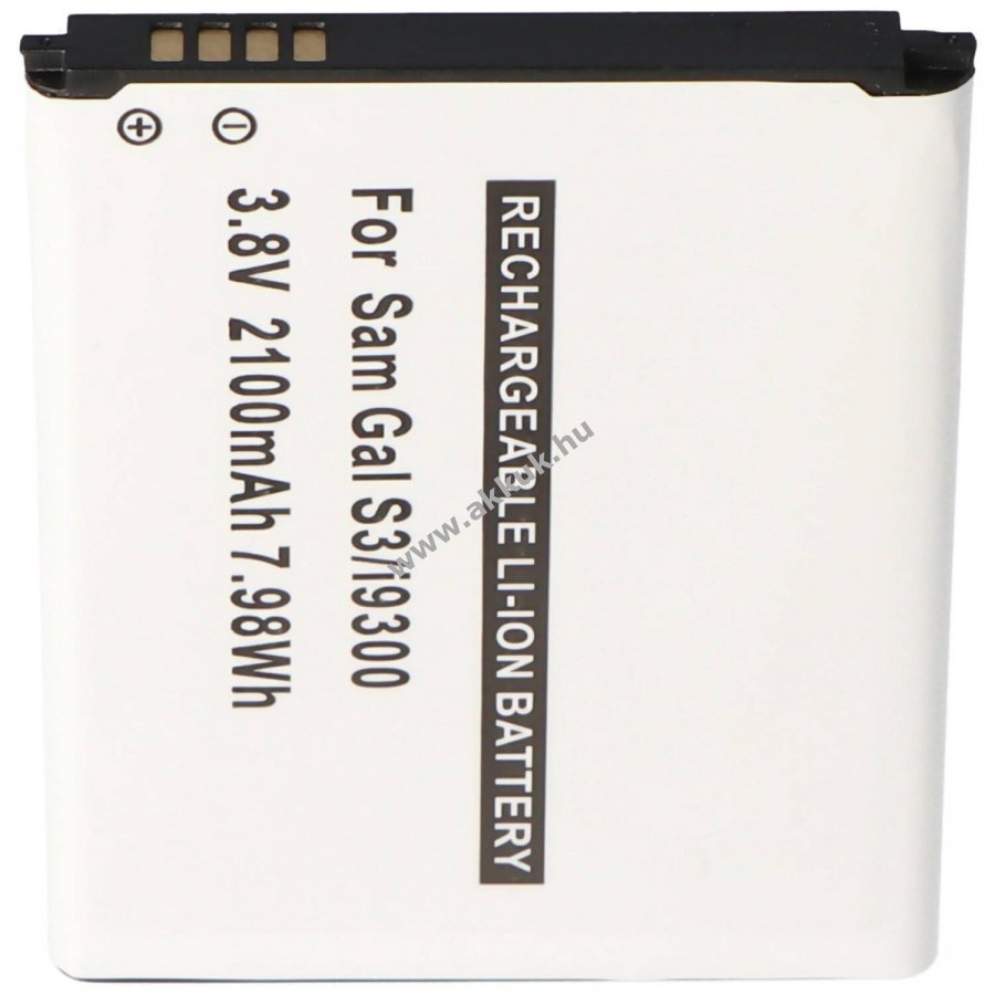 Helyettesítő Li-Ion akkumulátor Samsung Galaxy S III-hoz integrált NFC-antennával. Névleges feszültség 3,7V-3,8V és kapacitás 2100mAh beépített védelmi áramkör a túlterhelés, túlmelegedés és rövidzárlat ellen. Nem eredeti Samsung akkumulátor, ábra hasonló. Méretek: 62,6 x 50,3 x 5,2 mm tömeg: 39g szín: fekete.