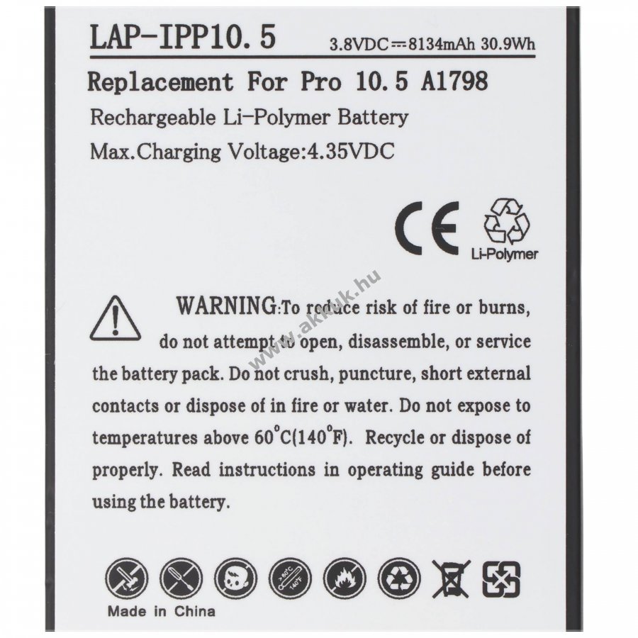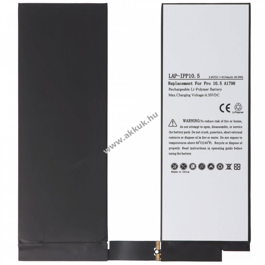 Utángyártott Li-Polymer akkumulátor Apple iPad Pro 10.5 (2017) készülékekhez nem eredeti Apple akkumulátor, önszerelésre alkalmas, az eredeti Apple töltővel tölthető.