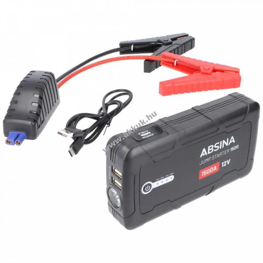 - Tartozékok a csomagban: Absina Jumpstarter 1500, indítókábel, USB-töltőkábel, tárolótáska