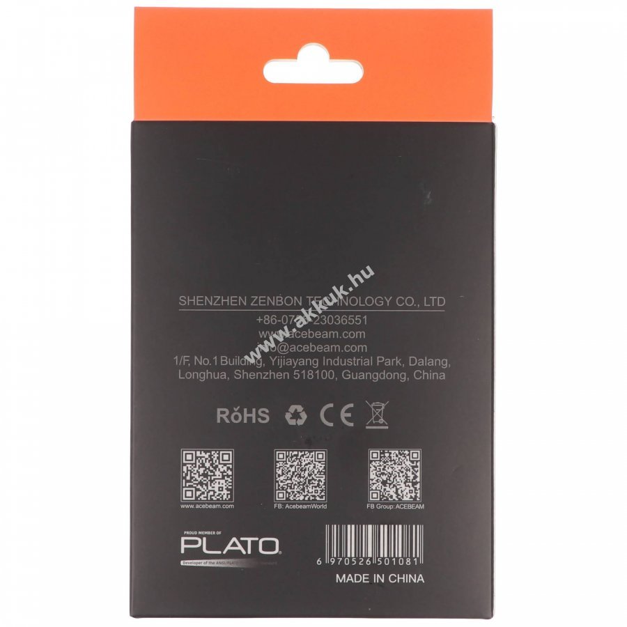Li-Ion 111.1mm x 25mm x 22.1mm 158 gr. ACEBEAM 1 év jótállás (további részletek)