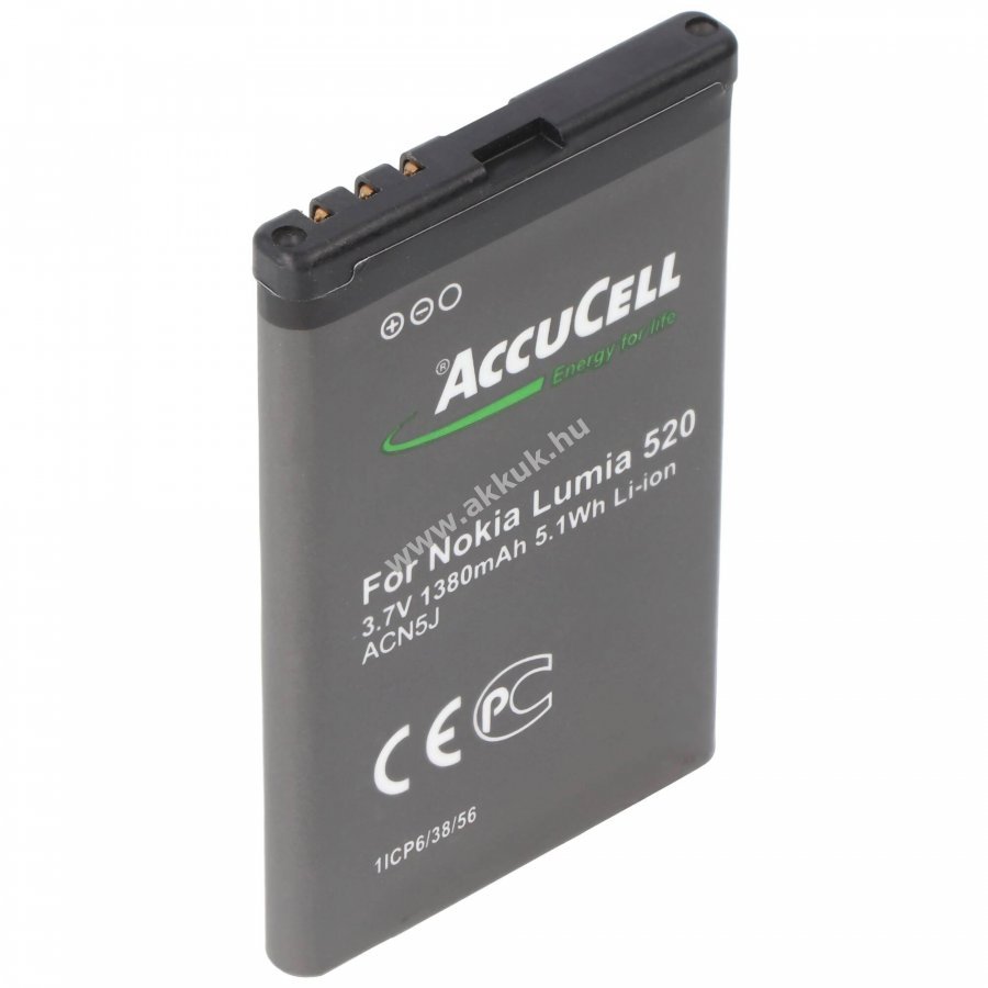 3.7V 1380mAh/5.2Wh Li-Ion 60mm x 38mm x 5.6mm 28 gr. AccuCell Szavatosság (további részletek)