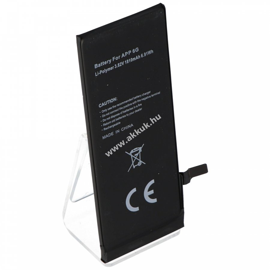 Utángyártott Li-Polymer akkumulátor Apple iPhone 6 készülékekhez, 3,82V feszültséggel és 1810mAh kapacitással. Kompatibilis az APPLE 616-0805, 616-0806, A1549, A1586, A1589 modellekkel. Vékony, újratölthető akkumulátor, amely pontosan illeszkedik az iPhone 6 készülékbe. A beépítés szakértelmet igényel, ezért ajánlott szakképzett szerelő segítségét kérni. Méretei 96,17 x 37,60 x 3,20 mm, súlya kb. 25 g.