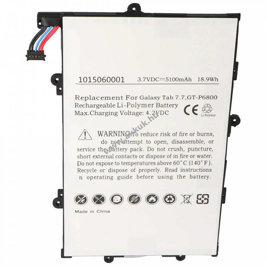 3.7V 5100mAh/18.9Wh LiPo 238mm x 89mm x 3.4mm 132 gr. AccuCell Szavatosság (további részletek)