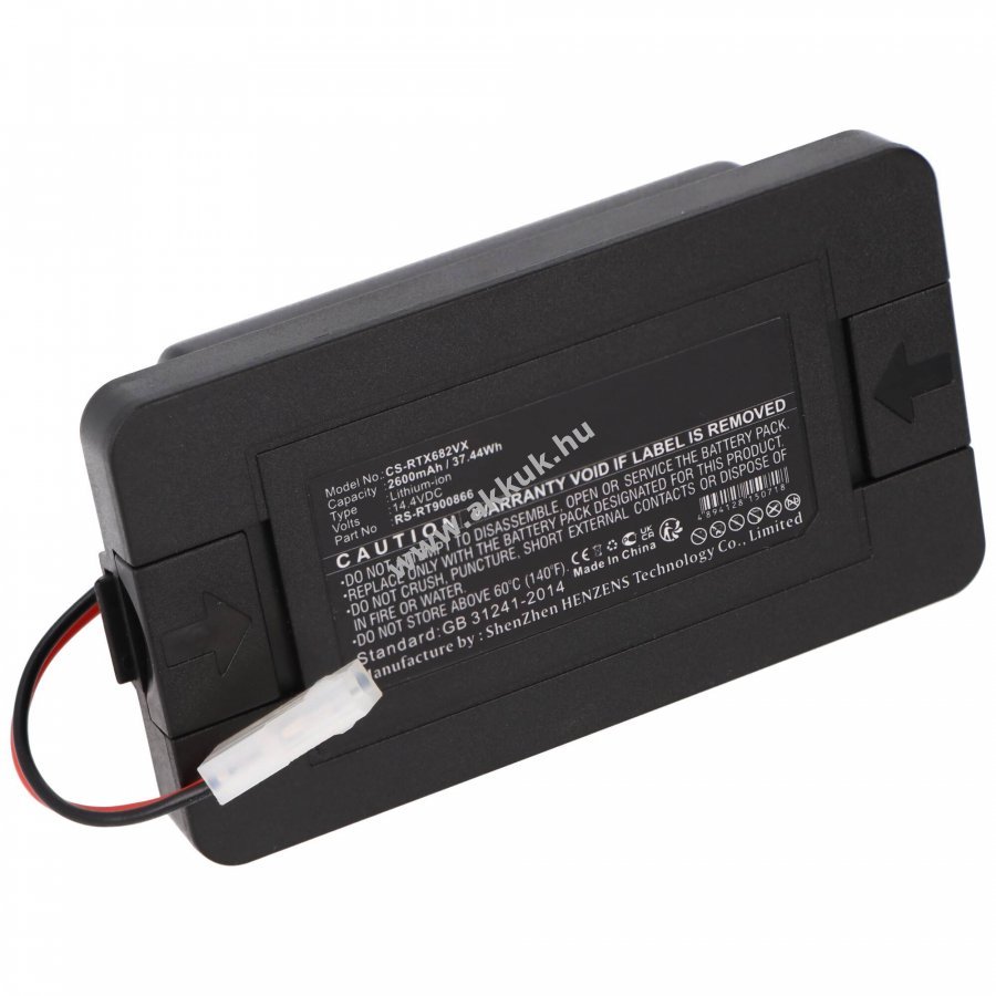 14,4V feszültségű és 2600mAh kapacitású Li-Ion akkumulátor Rowenta RR6825, RR7455, RS-RT900866 és más modellekhez. Kompakt méretű, beépített rövidzárlat- és túltöltésvédelemmel. Méretei 107 mm x 58 mm x 43 mm, súlya 241 g. A gyári töltővel tölthető. Megbízható energiaforrás robotporszívókhoz, hosszú működési időt és stabil teljesítményt biztosít. Precíz gyártás és szigorú minőségellenőrzés jellemzi, kiváló alternatíva az eredeti akkumulátor helyett.