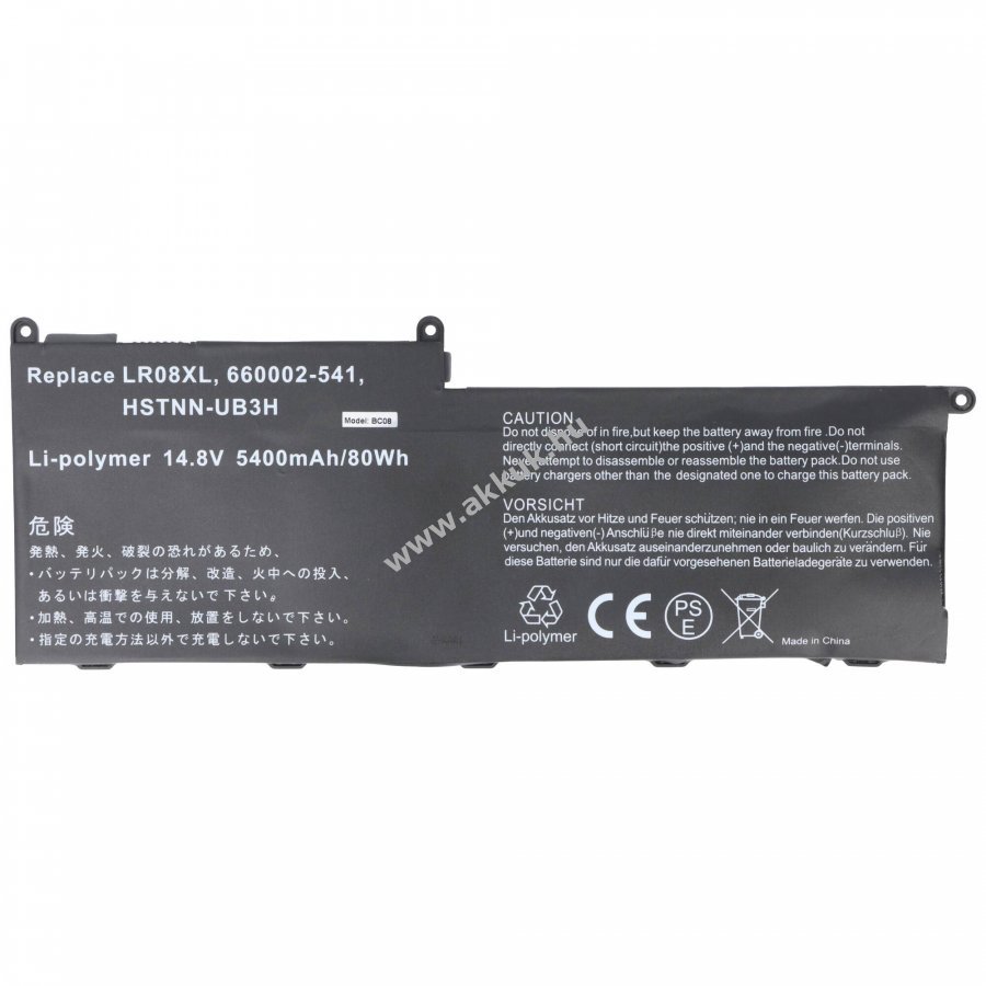 14.8V 5400mAh/80Wh LiPo 258mm x 95.7mm x 13.4mm 440 gr. AccuCell Szavatosság (további részletek)