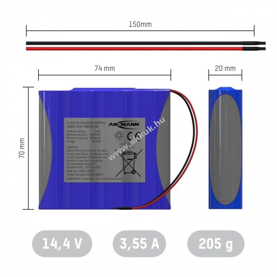 14.4V 3350mAh/48.24Wh Li-Ion kék 7.4mm x 2.2mm x 6.8mm 205 gr. Ansmann 1 év jótállás (további részletek)