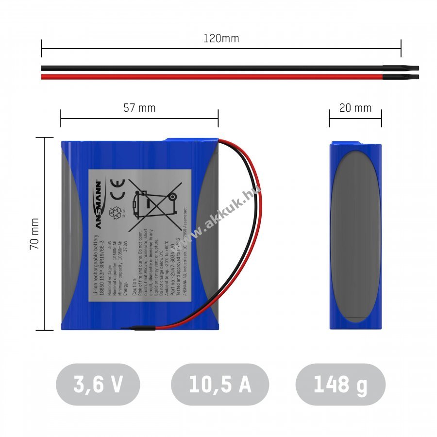 3.63V 10500mAh Li-Ion kék 57mm x 20mm x 70mm 141 gr. Ansmann 1 év jótállás (további részletek)