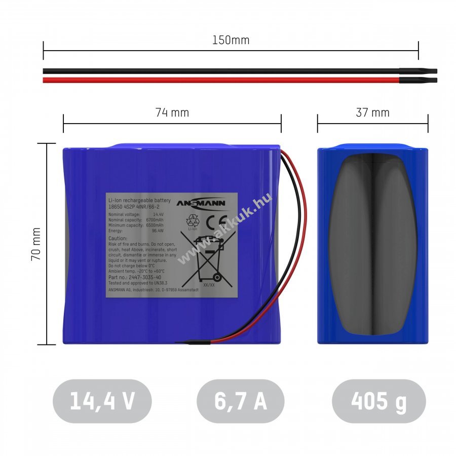 14.54V 6700mAh/97.4Wh Li-Ion kék 74.5mm x 37.5mm x 71mm 405 gr. Ansmann 1 év jótállás (további részletek)