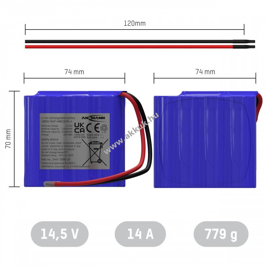 14.54V 14000mAh/203.5Wh Li-Ion kék 7.4mm x 7.4mm x 7mm 779 gr. AccuCell 2 év jótállás (további részletek)