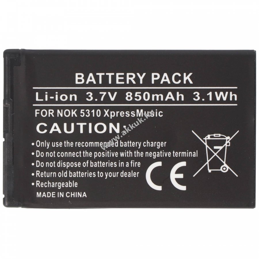 3.7V 850mAh/3.2Wh Li-Ion 54.5mm x 34mm x 4.6mm 16 gr. AccuCell Szavatosság (további részletek)