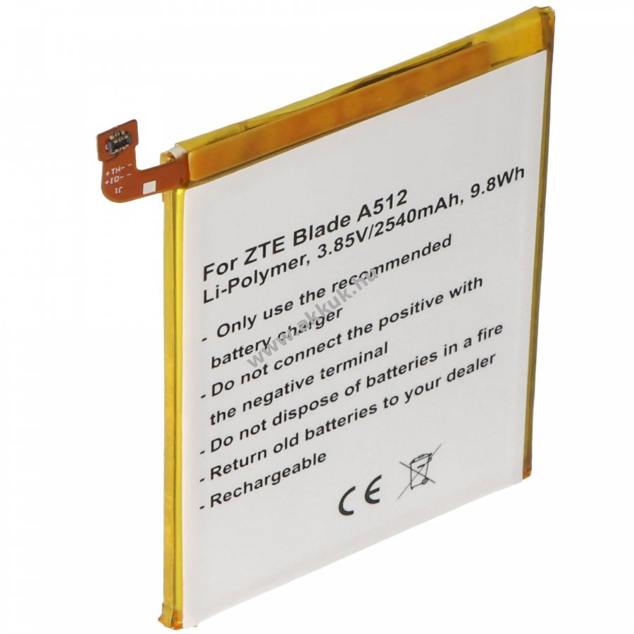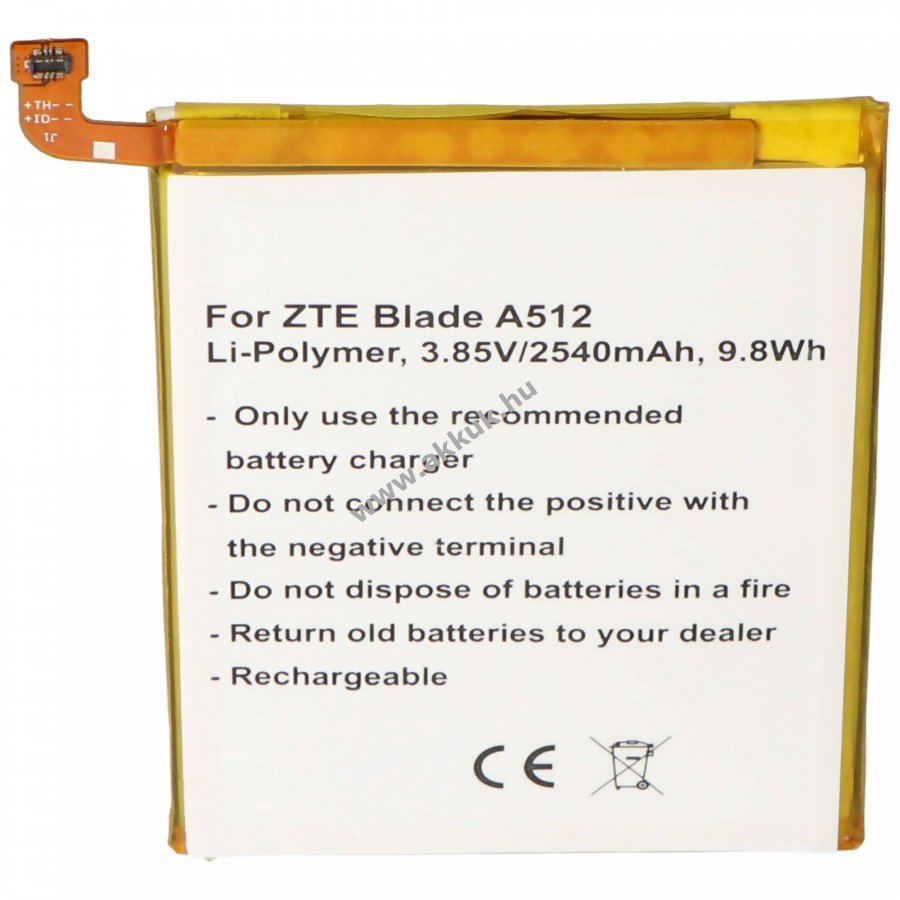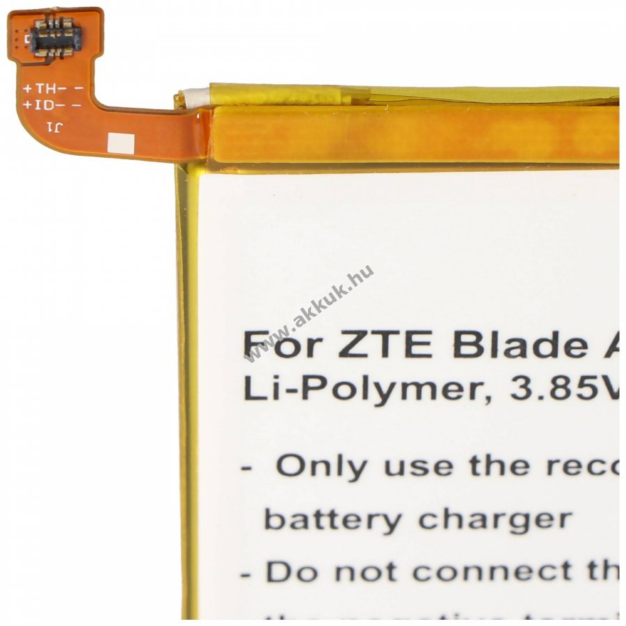 Li-Polymer technológiás akku ZTE Blade A512, A910, BA910, BV0701 készülékekhez. 3,85V feszültség, 2500mAh kapacitás, max. 9,8Wh energia. Nincs memóriahatás, védelem rövidzárlat, túltöltés és túlmelegedés ellen. Kompatibilis a gyári töltőkkel. Méret: 76,8 x 59,6 x 3,2 mm, tömeg: 39 g.