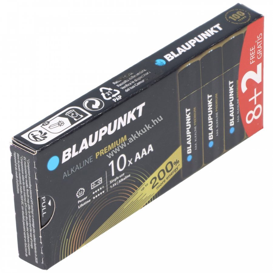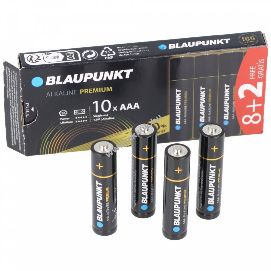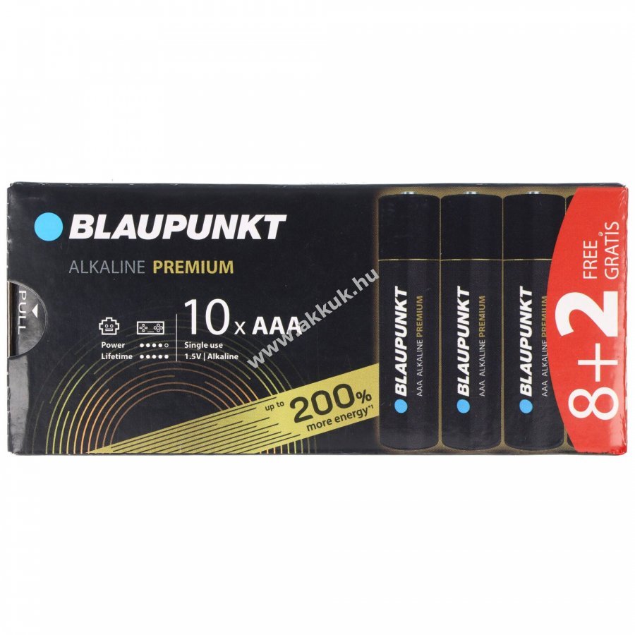 Blaupunkt Alkaline Premium AAA (LR03) 1,5V elemek 10db/csomag. Megbízható, hosszú élettartamú energia mindennapi készülékekhez, alacsony önkisülés és stabil 1,5V feszültség.