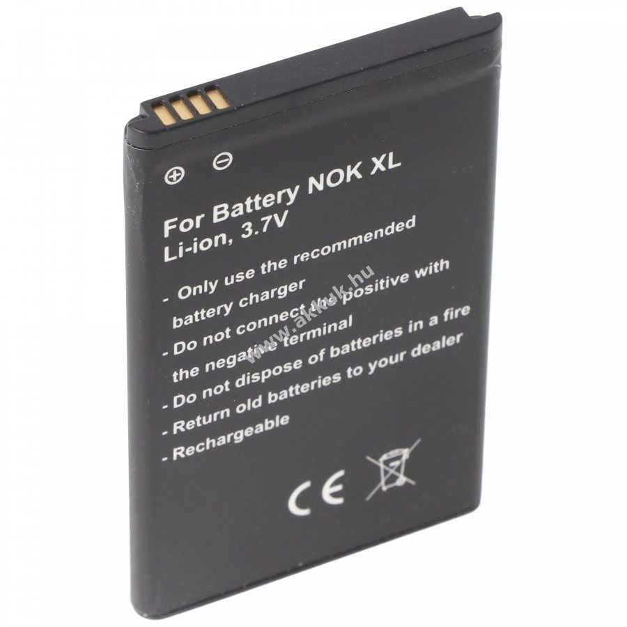 Minőségi Li-ion akkumulátor Nokia XL, Nokia XL Dual Sim és kompatibilis készülékekhez. 3,7V feszültség és 1650mAh kapacitás biztosítja az eredeti akkumulátorral megegyező üzemidőt. Nincs memóriahatás, bármikor tölthető kapacitásvesztés nélkül. Méretei kb. 72,2 x 45,2 x 5,5 mm, tömege 37,65 g. Védett túlterhelés és túlmelegedés ellen a biztonságos használatért és töltés közbeni problémamentességért.