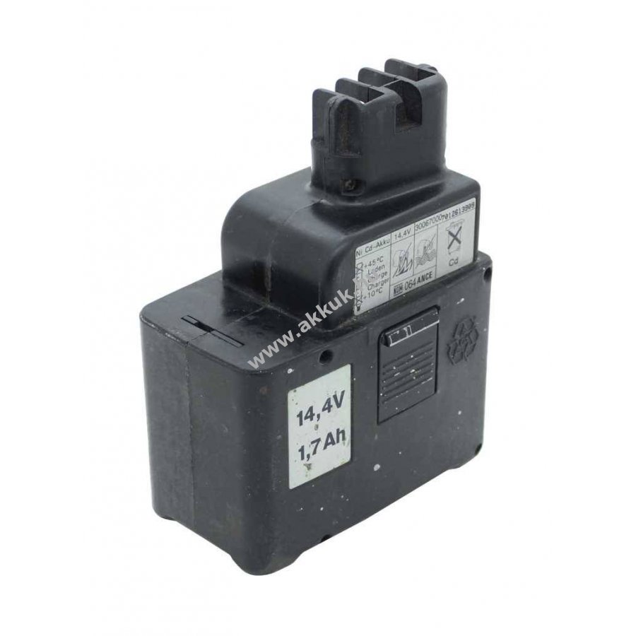NiMH technológiájú akkucella 14,4V feszültséggel és 1500mAh kapacitással. Méretei 107 x 64 x 132 mm. Metabo 30067000 és 90615381 modellekhez kompatibilis.