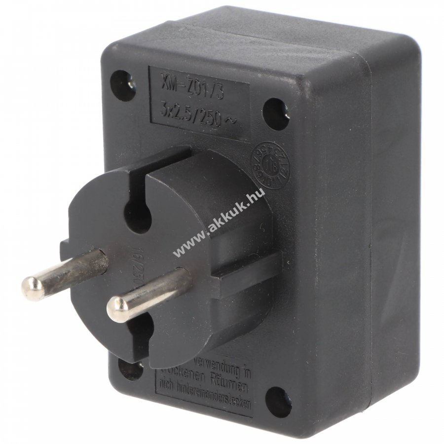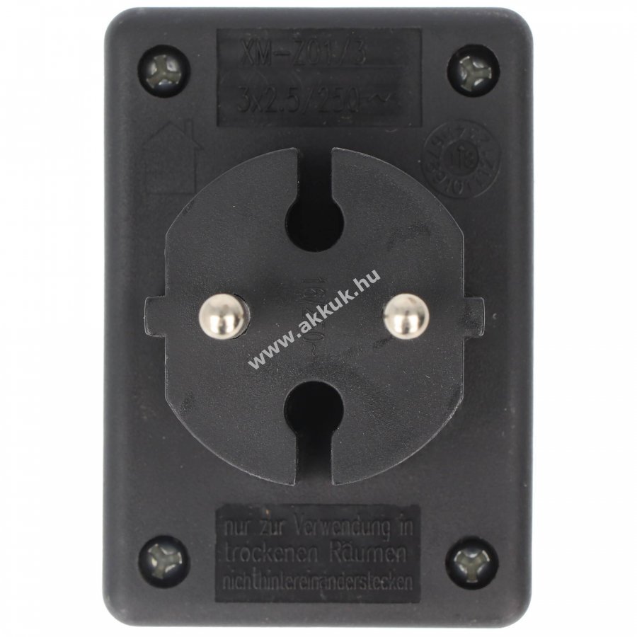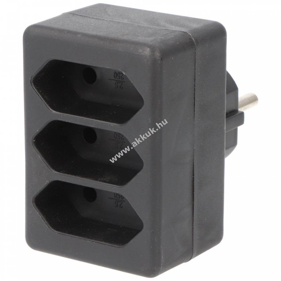 Fekete 3x Euro hálózati elosztó, kapcsoló és tápkábel nélkül.