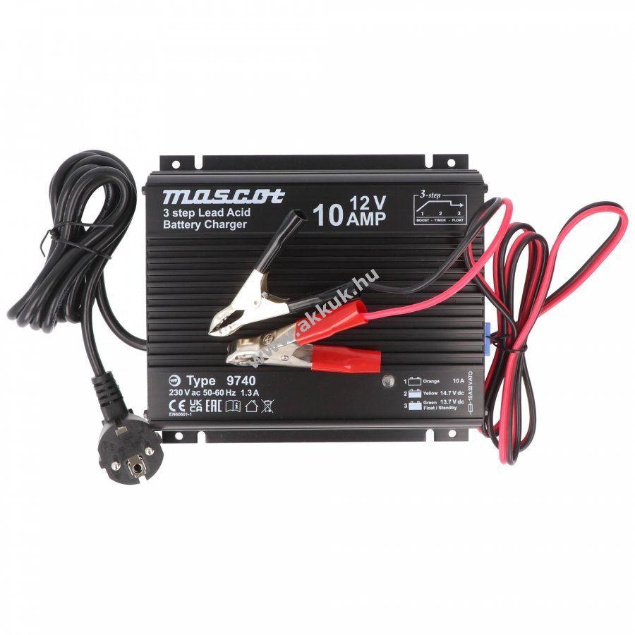 Mascot 9740 akkutöltő 12V 10A, háromlépcsős töltés ólomakkumulátorokhoz