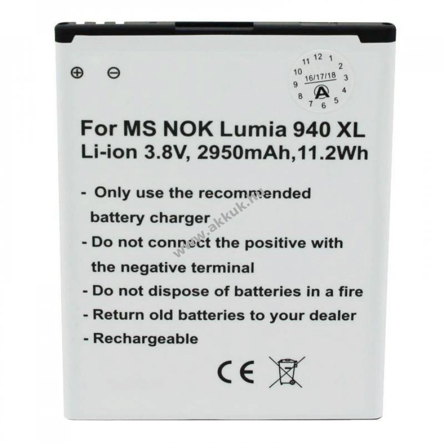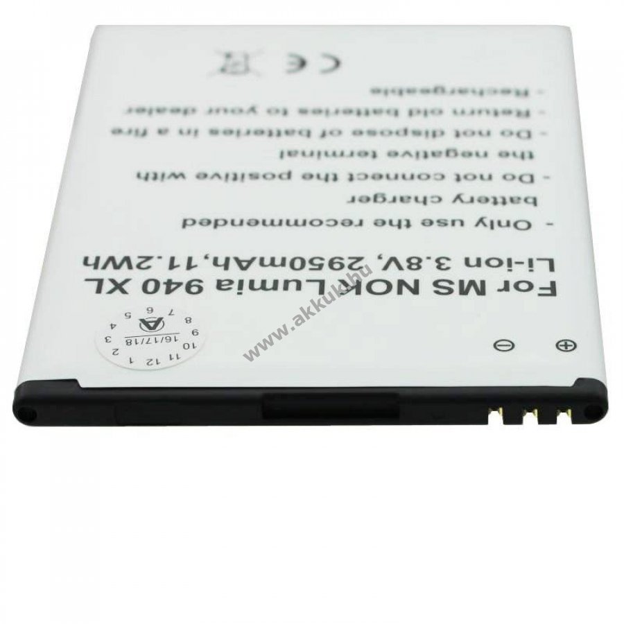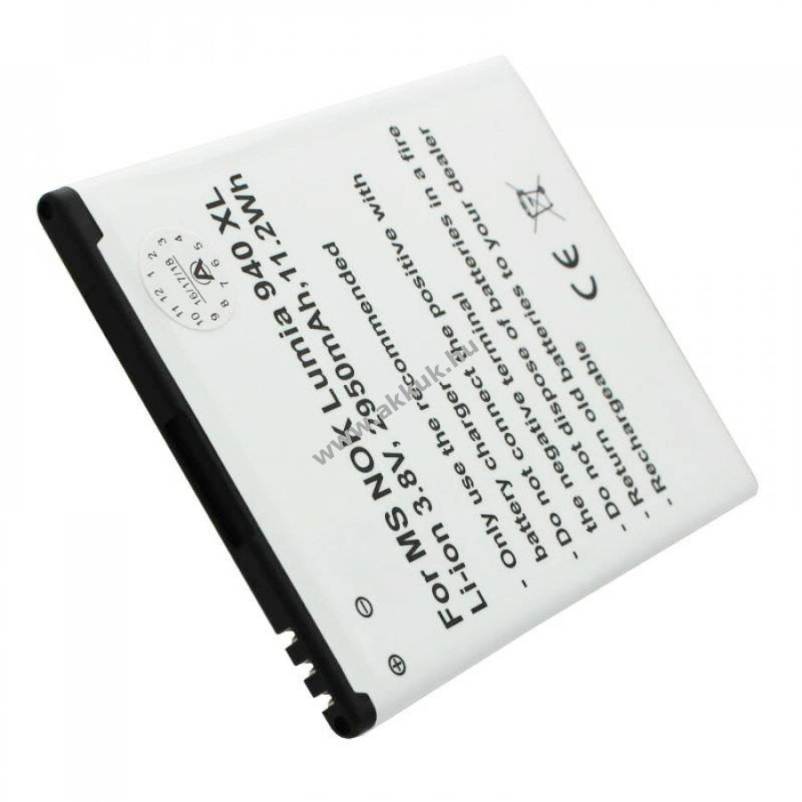 Nem eredeti, helyettesítő Li-Ion akkumulátor Microsoft Lumia 940 XL készülékhez. 2950mAh kapacitású, kompakt kialakítású, beépített rövidzárlatvédelemmel valamint töltés- és túlmelegedés elleni védelmi áramkörrel.