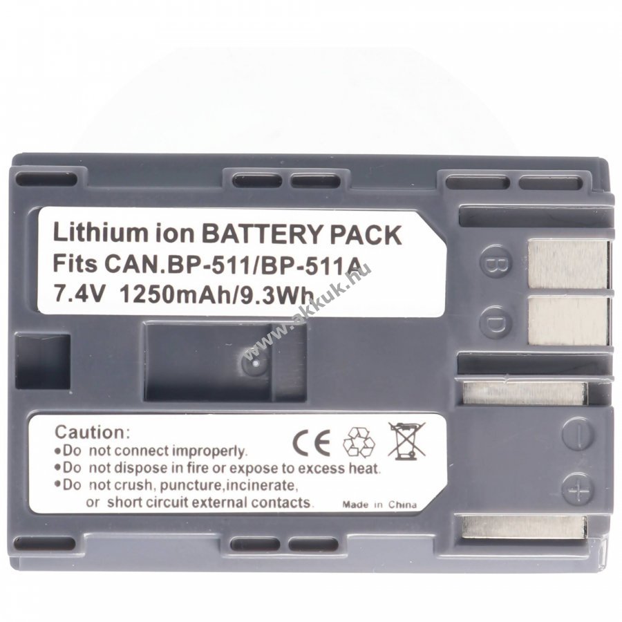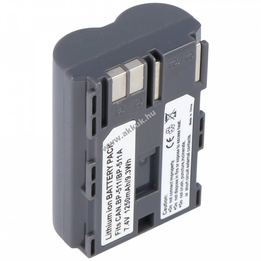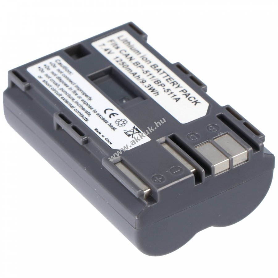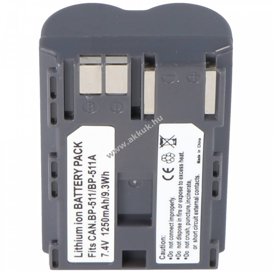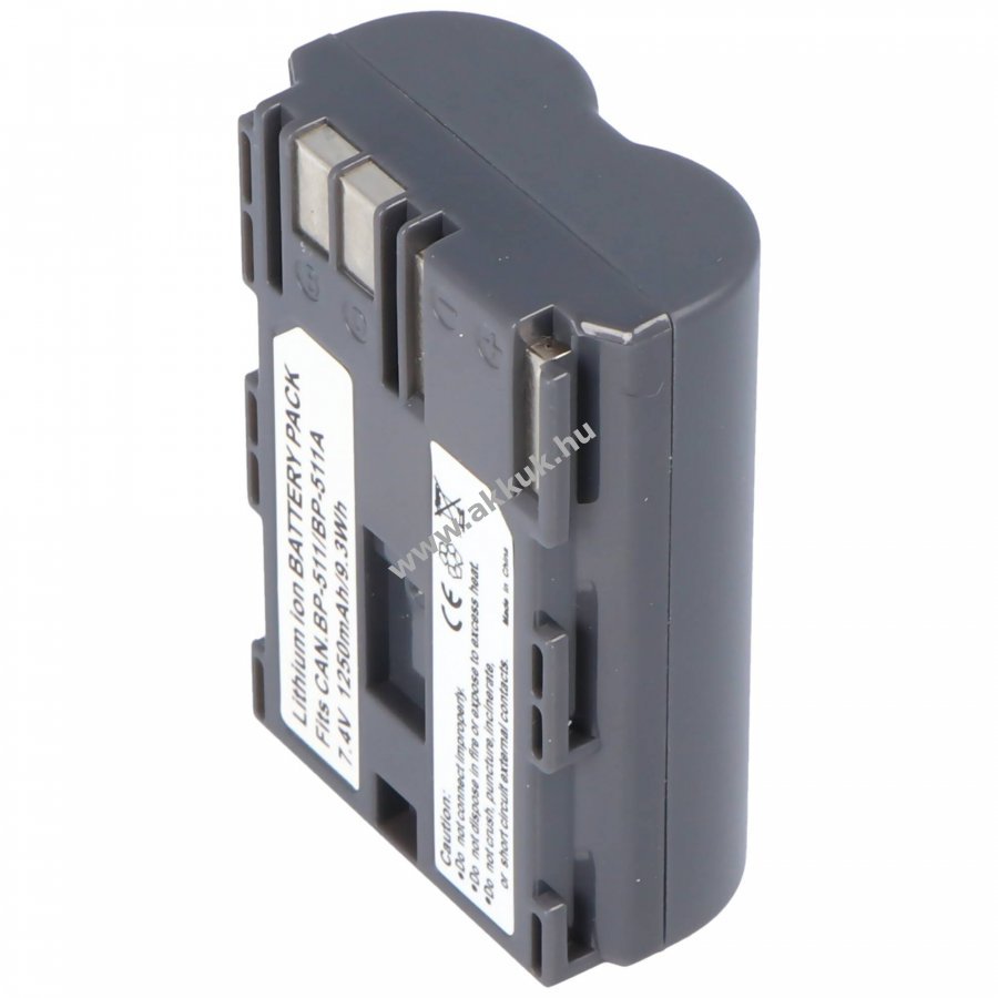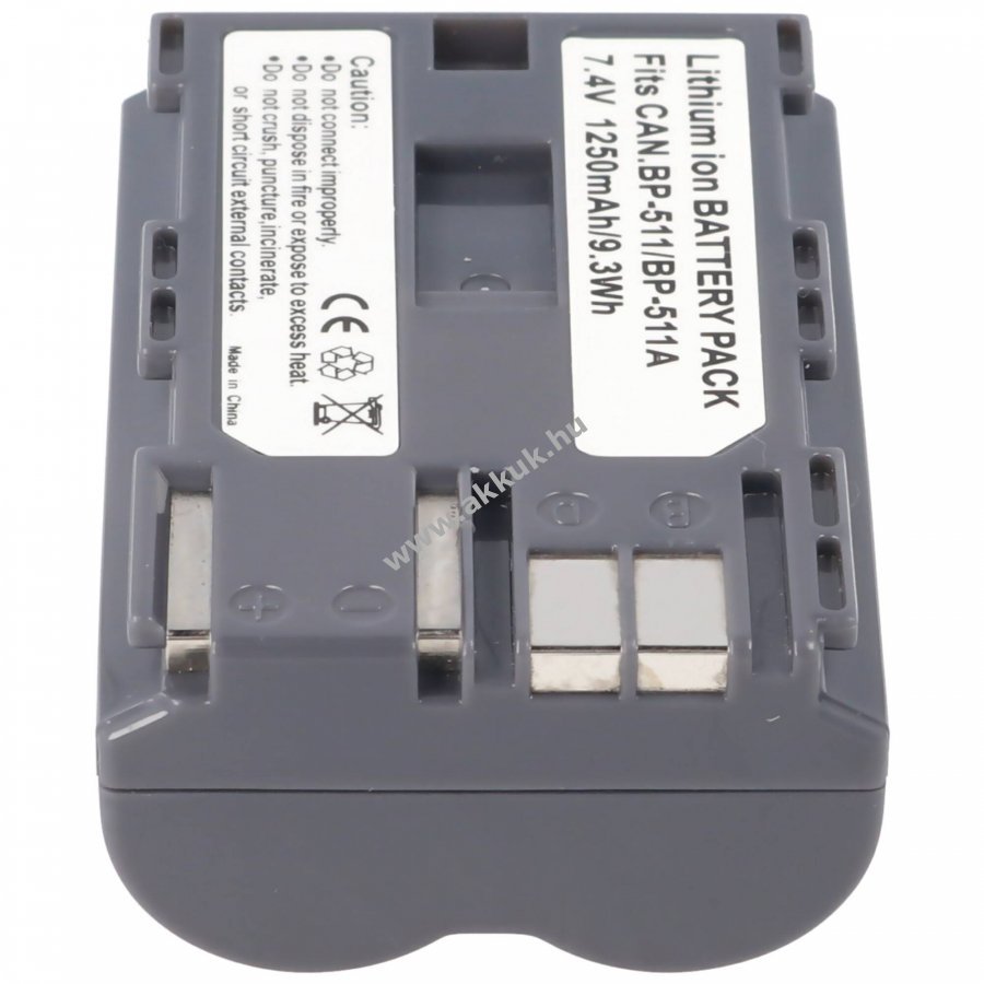 Li-ion akkumulátor Canon BP-511, BP-511A, BP-508, BP-512, BP-514 típusokhoz. Kompatibilis több Canon fényképezőgép és kamera modellel. Fekete színű, 7,2-7,4V feszültségű és 1250-1600mAh kapacitású. Méretei: 55,1x38,2x21 mm, súlya 76 g.