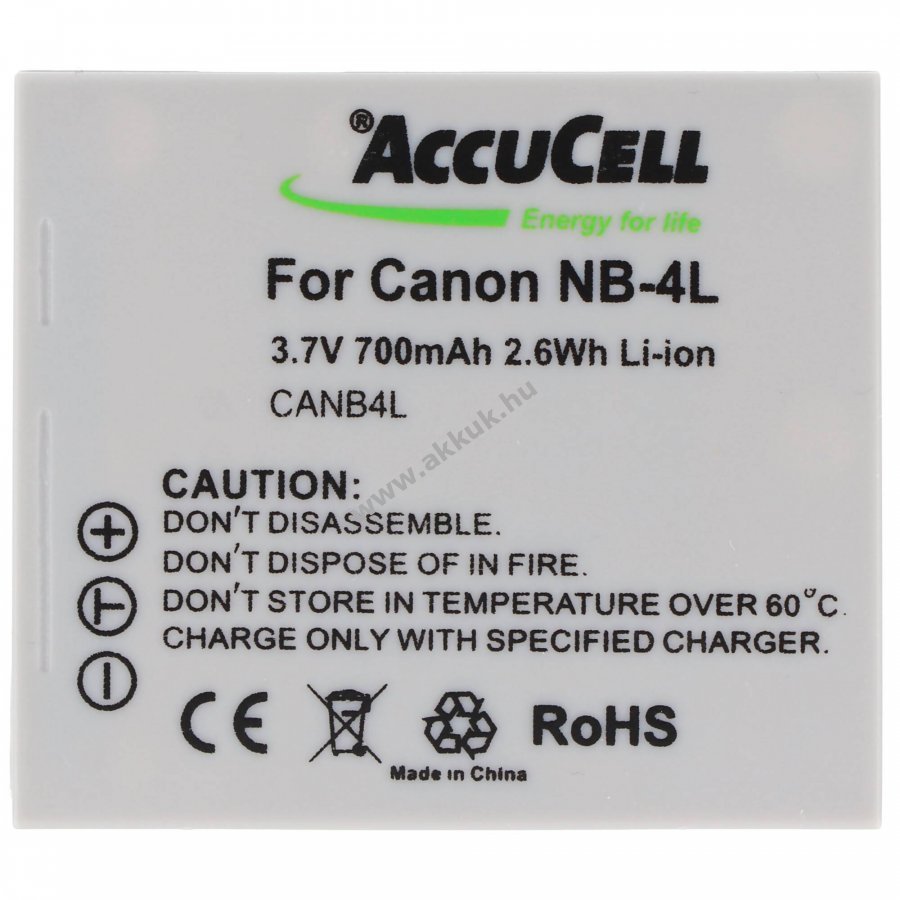 Helyettesítő Li-Ion akku Canon NB-4L jelzésű fényképezőgépekhez. Nem eredeti Canon NB-4L akkumulátor, utánépített kivitel a megadott műszaki adatokkal.
