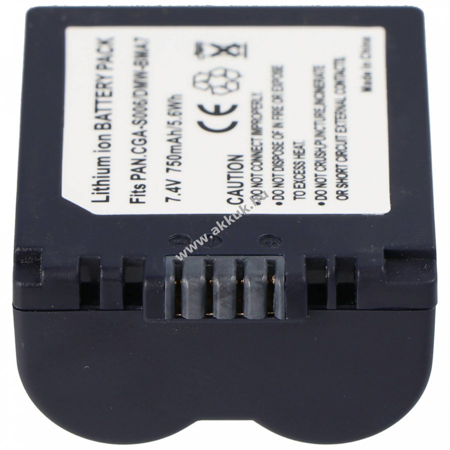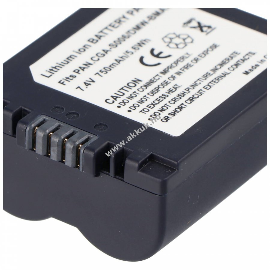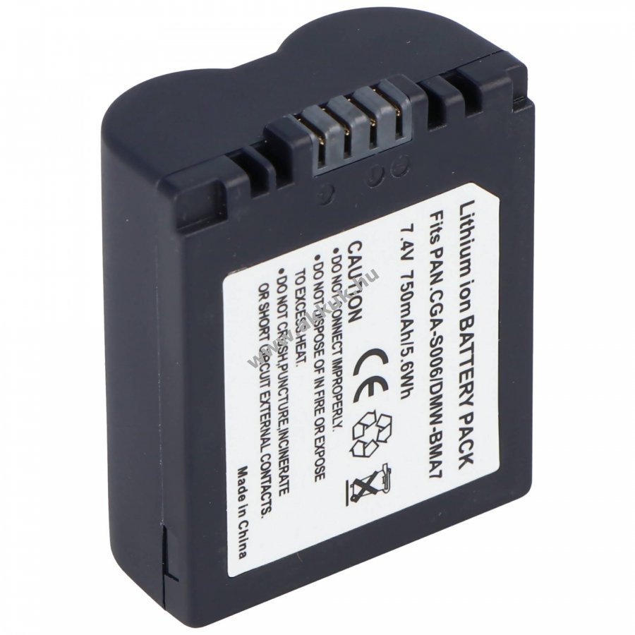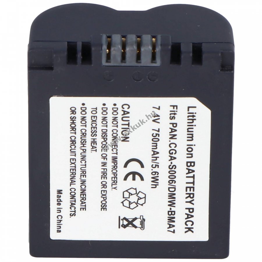 Nem eredeti, utángyártott Li-Ion akkumulátor, kompatibilis a Panasonic CGA-S006/CGA-S006E/CGR-S006 és DMW-BMA7 típusokkal alkalmas csere- vagy tartalékakkuként fényképezőgépekhez.