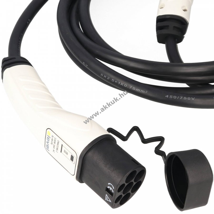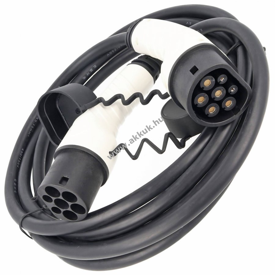 Kompakt 11kW Typ 2 - Typ 2 töltőkábel elektromos autókhoz, EU norma 62196 szerint, 5m hosszú, robusztus, IP55 védettségű kivitel