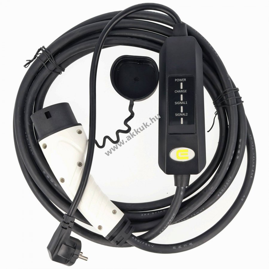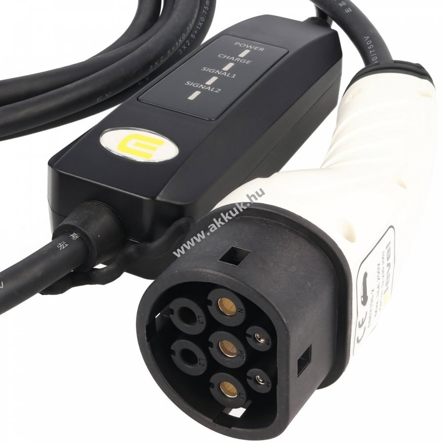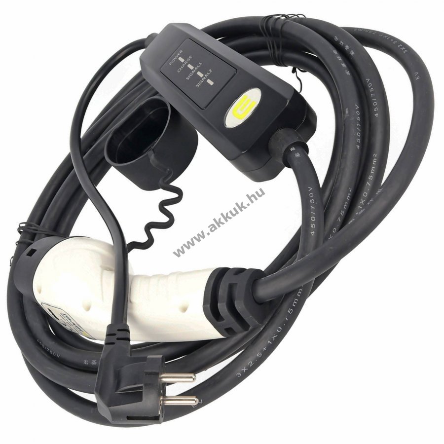 Mobil 1-fázisú Mode2 töltőkábel Schuko hálózati dugóval elektromos autókhoz. Rövid, kompakt kivitel 6m kábellel, kompatibilis a legtöbb európai Typ2 járműbemenettel, maximális töltőteljesítmény 3kW. Robusztus, gumírozott ház IP54 védettséggel, UV-álló és ütésálló UL94V-0 éghetőségi osztály. Tervezett élettartam több mint 10000 csatlakoztatás.