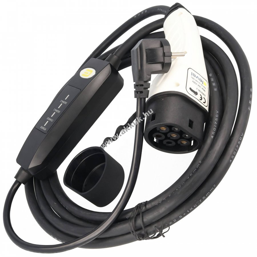 - 230V 13A 1-fázisú Mode2 töltés, max 3kW