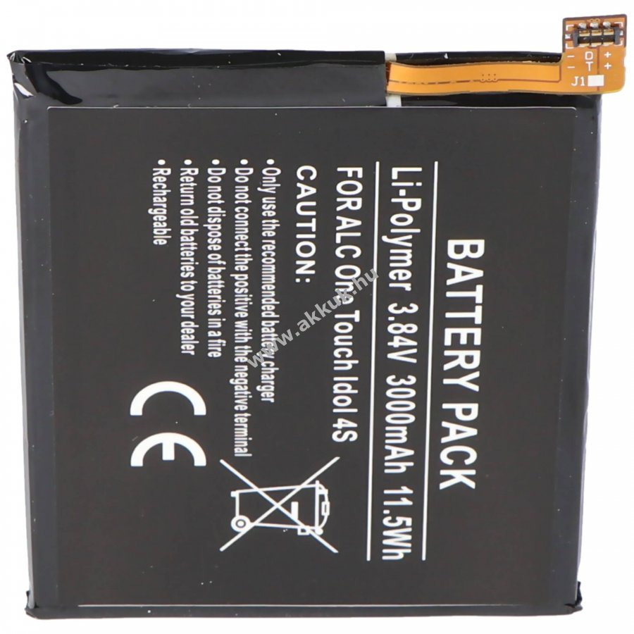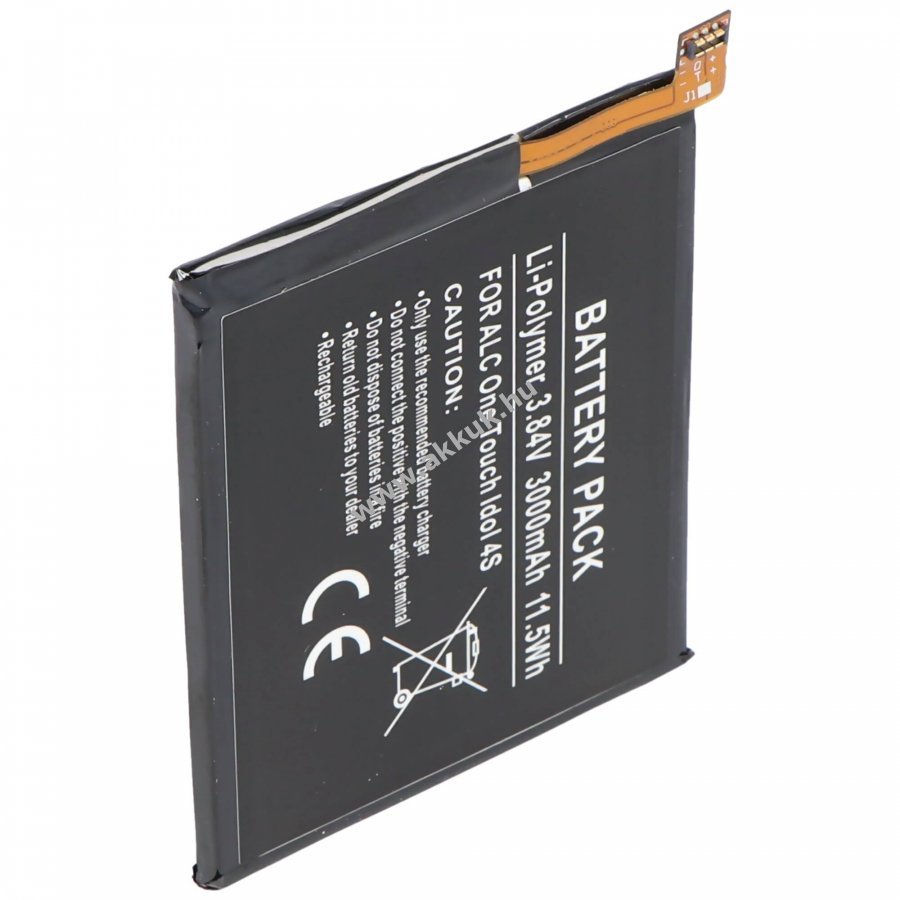 Helyettesítő beépített Li-Polymer akkumulátor Alcatel One Touch idől 4S mobiltelefonhoz, 3,84V 3000mAh 11,5Wh.