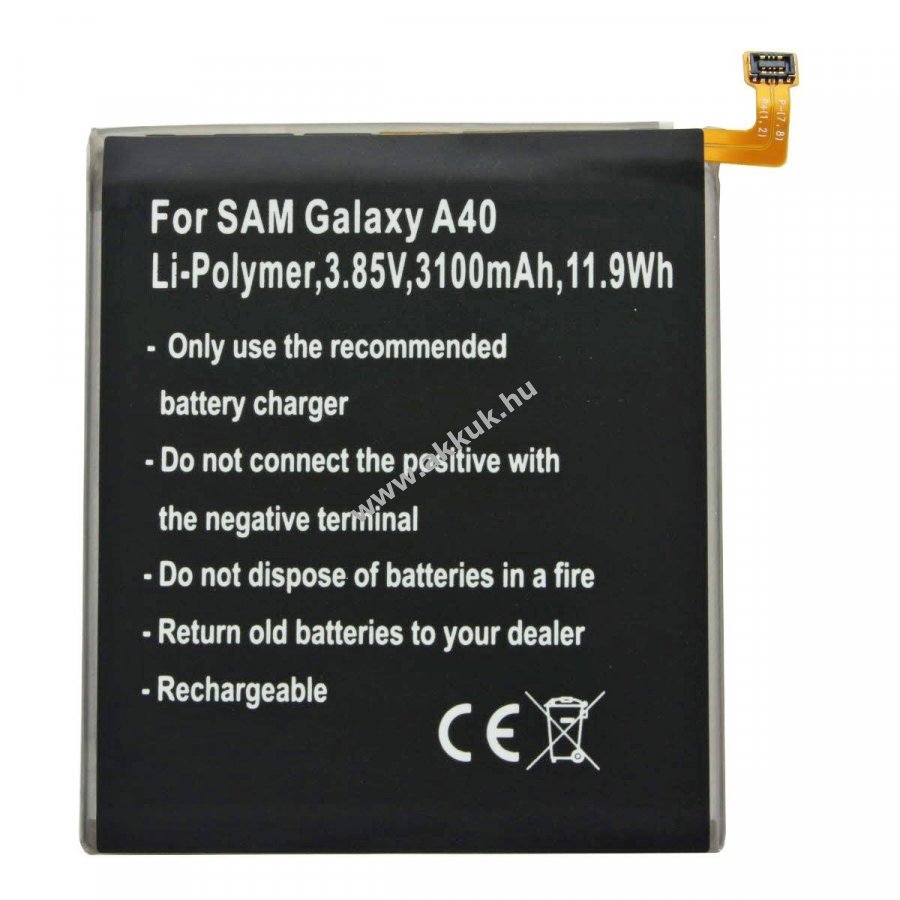 Friss, nem eredeti helyettesítő akkumulátor, pontosan illeszkedik a beépített Samsung Galaxy A40 mobiltelefon akkumulátorához. Minőségi cellák és beépített védelmi áramkör a túltöltés és túlmelegedés ellen rendelkezik rövidzárlat-védelemmel. Az akkumulátor tölthető a meglévő töltővel. A kép illusztráció nem eredeti Samsung alkatrész.