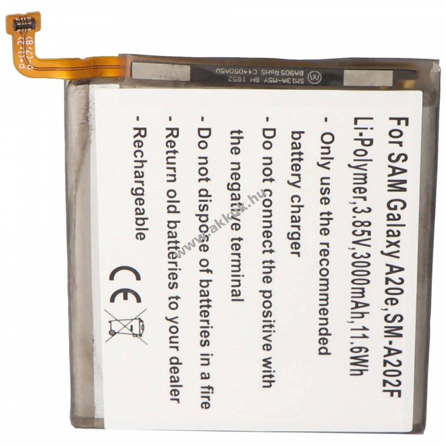 3.85V 3000mAh/11.6Wh LiPo 57.5mm x 4.12mm x 69.7mm AccuCell Szavatosság (további részletek)