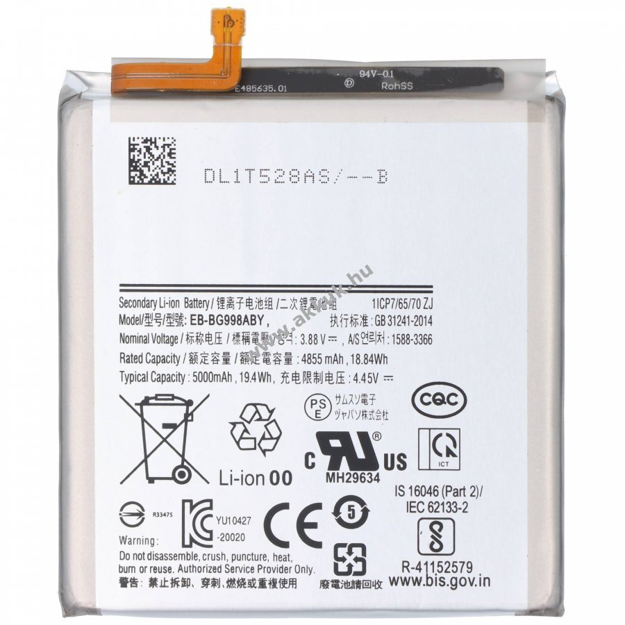 3.88V 4855mAh/18.84Wh Li-Polymer 69.5mm x 64mm x 5.9mm 66 gr. AccuCell Szavatosság (további részletek)