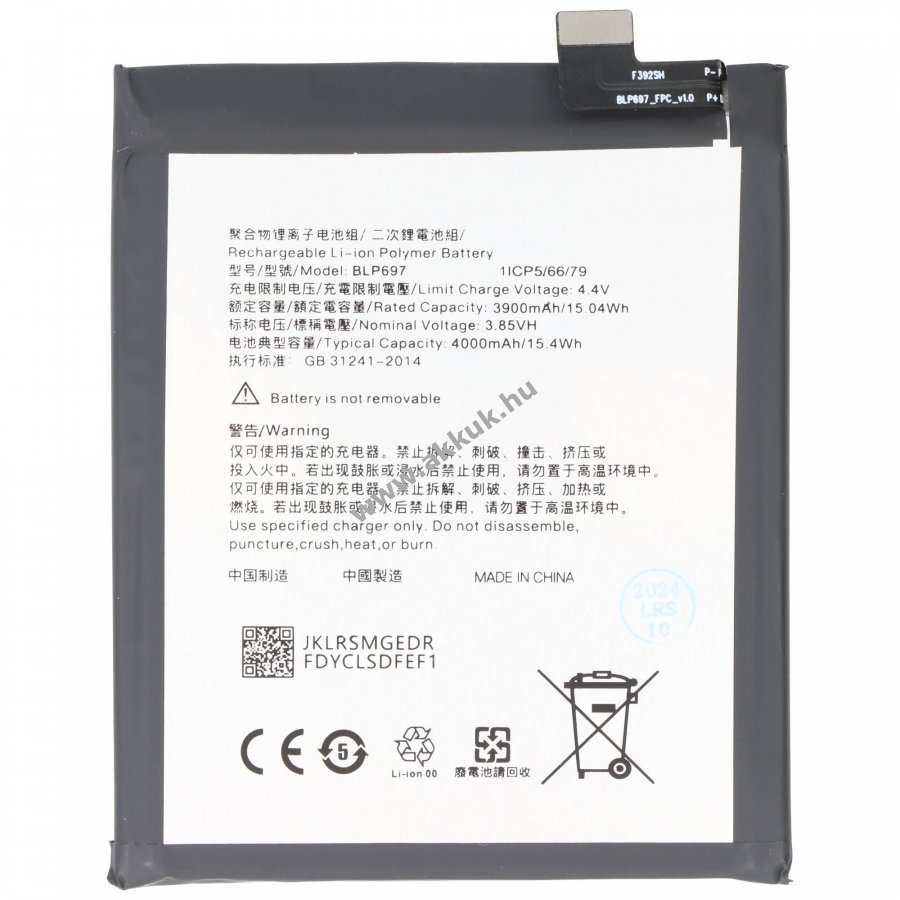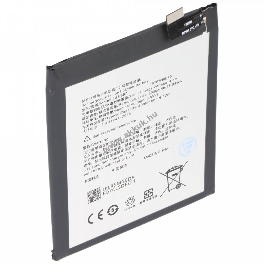 3.85V 4000mAh/15.4Wh LiPo 78mm x 64.4mm x 4.6mm 55 gr. AccuCell Szavatosság (további részletek)