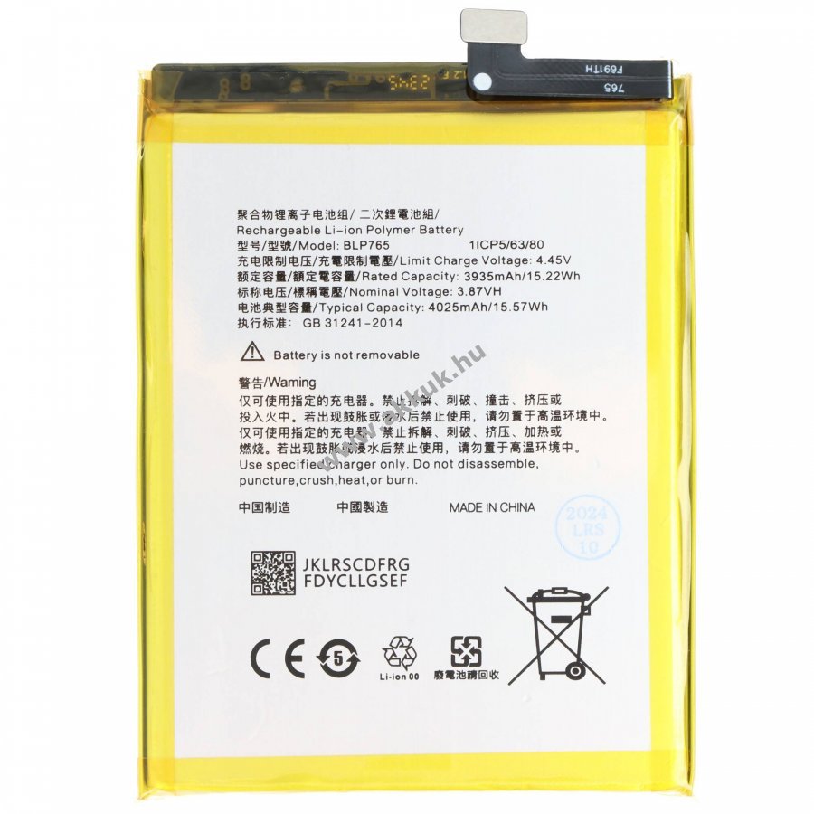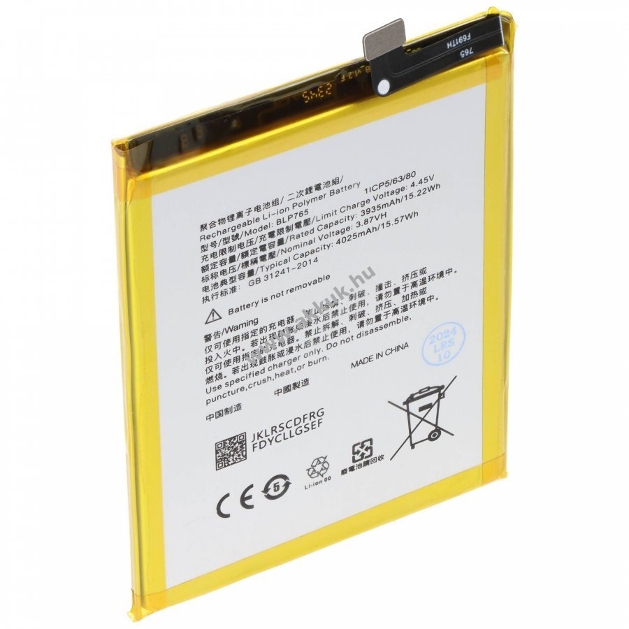 3.87V 4025mAh/15.6Wh LiPo 81.4mm x 61.8mm x 4.6mm 53 gr. AccuCell Szavatosság (további részletek)