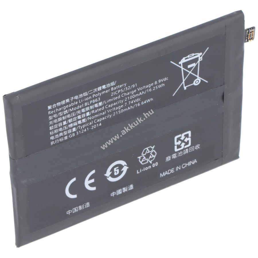 7.74V 2150mAh/16.6Wh LiPo 93mm x 62.7mm x 4.8mm 57 gr. AccuCell Szavatosság (további részletek)