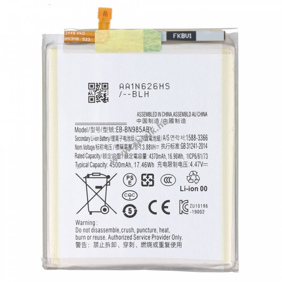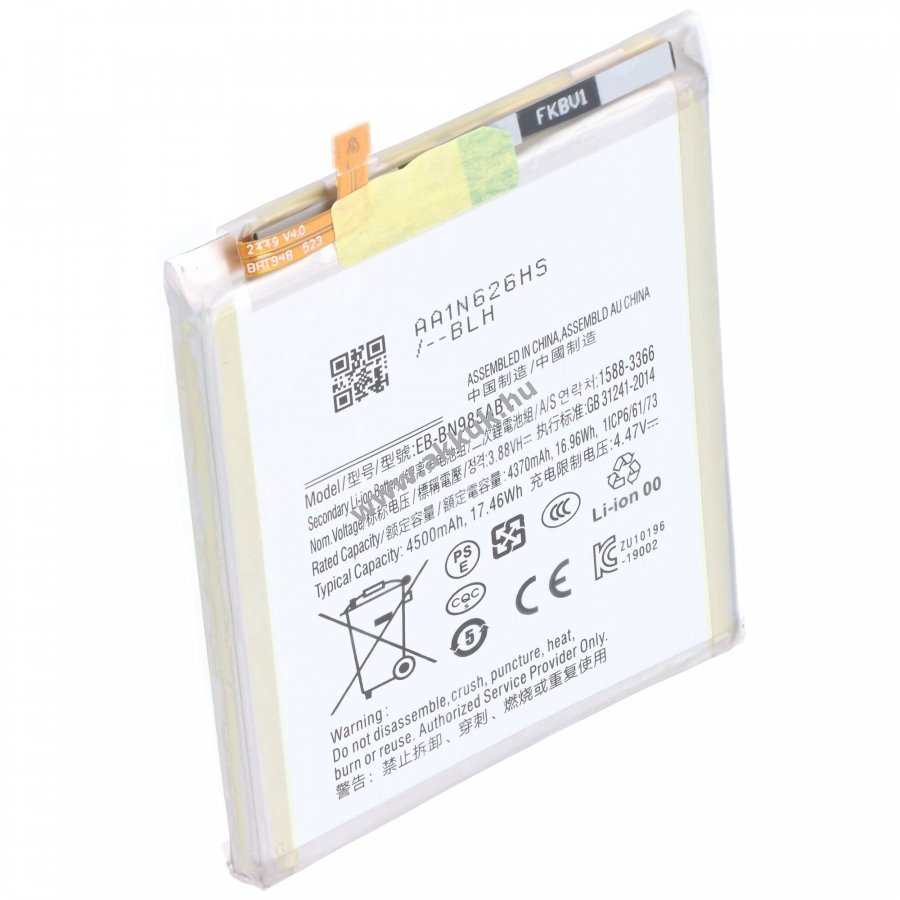 3.88V 4500mAh/17.46Wh LiPo 72.2mm x 59.4mm x 5.6mm 61 gr. AccuCell Szavatosság (további részletek)