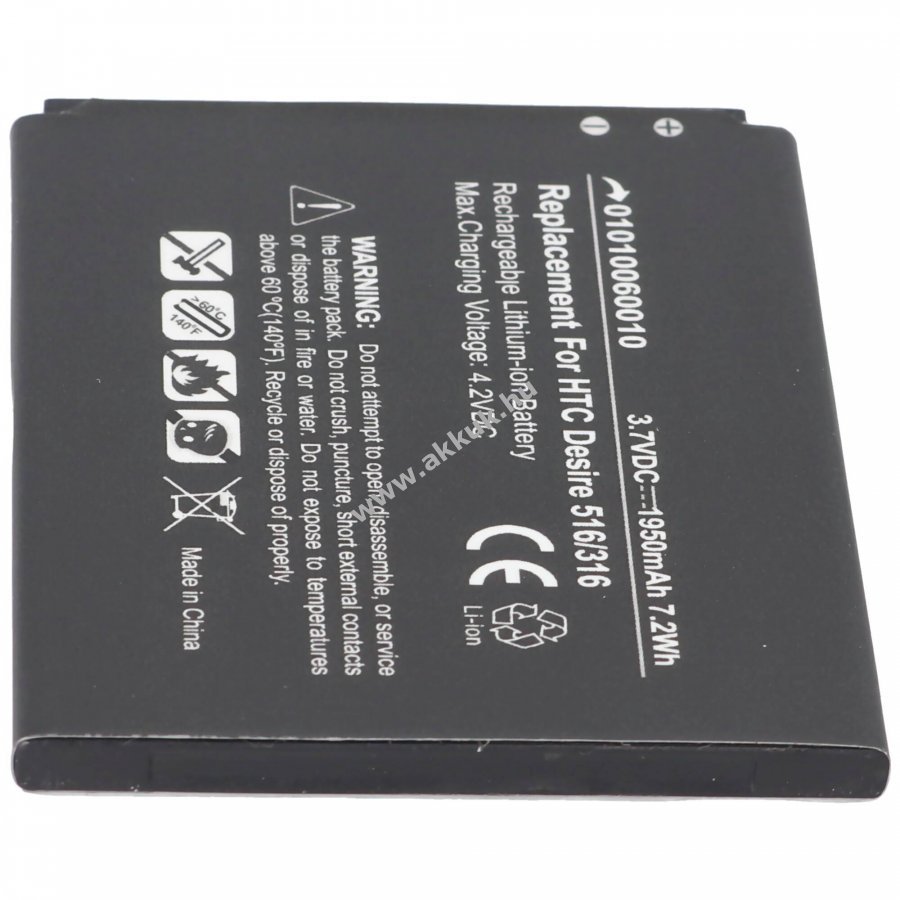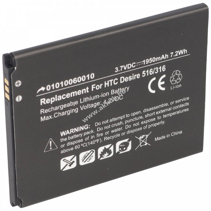 Helyettesítő akkumulátor HTC Desire 516 és 316 mobiltelefonokhoz, Li-Ion technológiával, 3,7V 1950mAh kapacitással.
