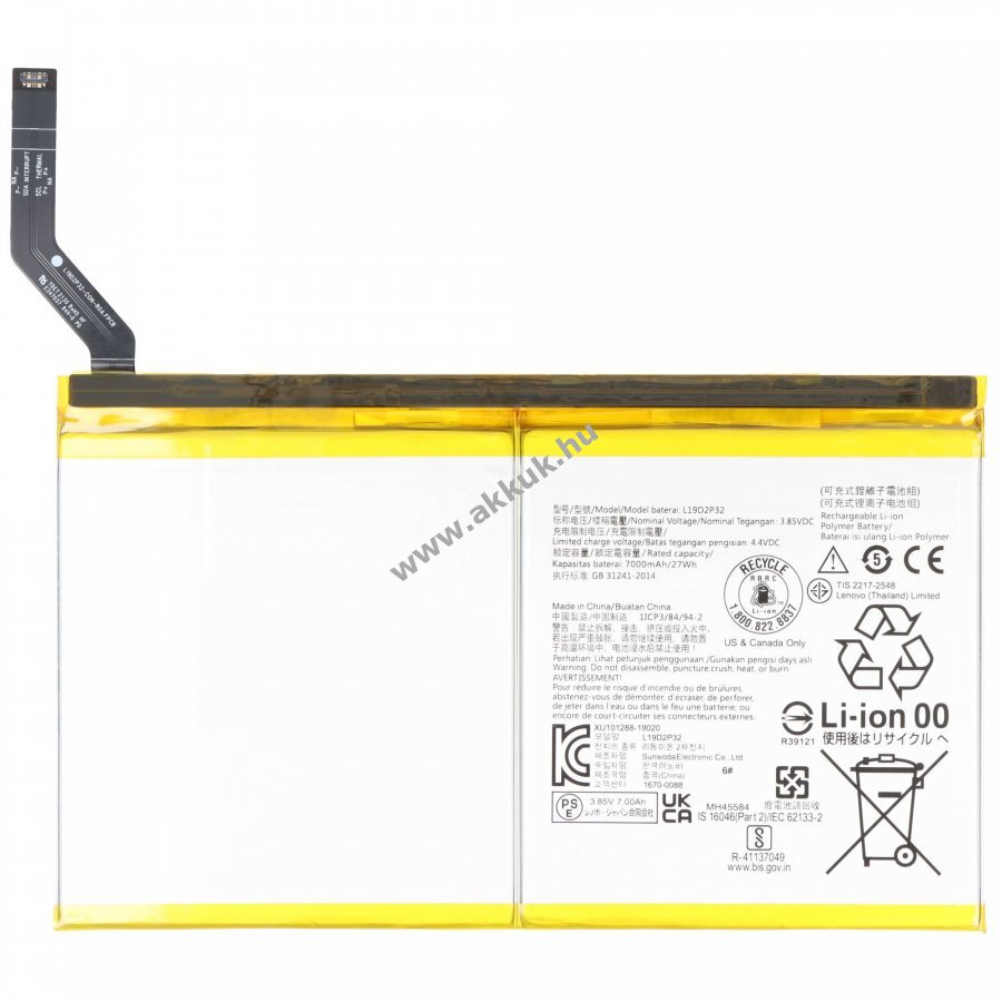 3.85V 7000mAh/27Wh Li-Polymer ezüst 167mm x 102mm x 3mm 192 gr. AccuCell 1 év jótállás (további részletek)