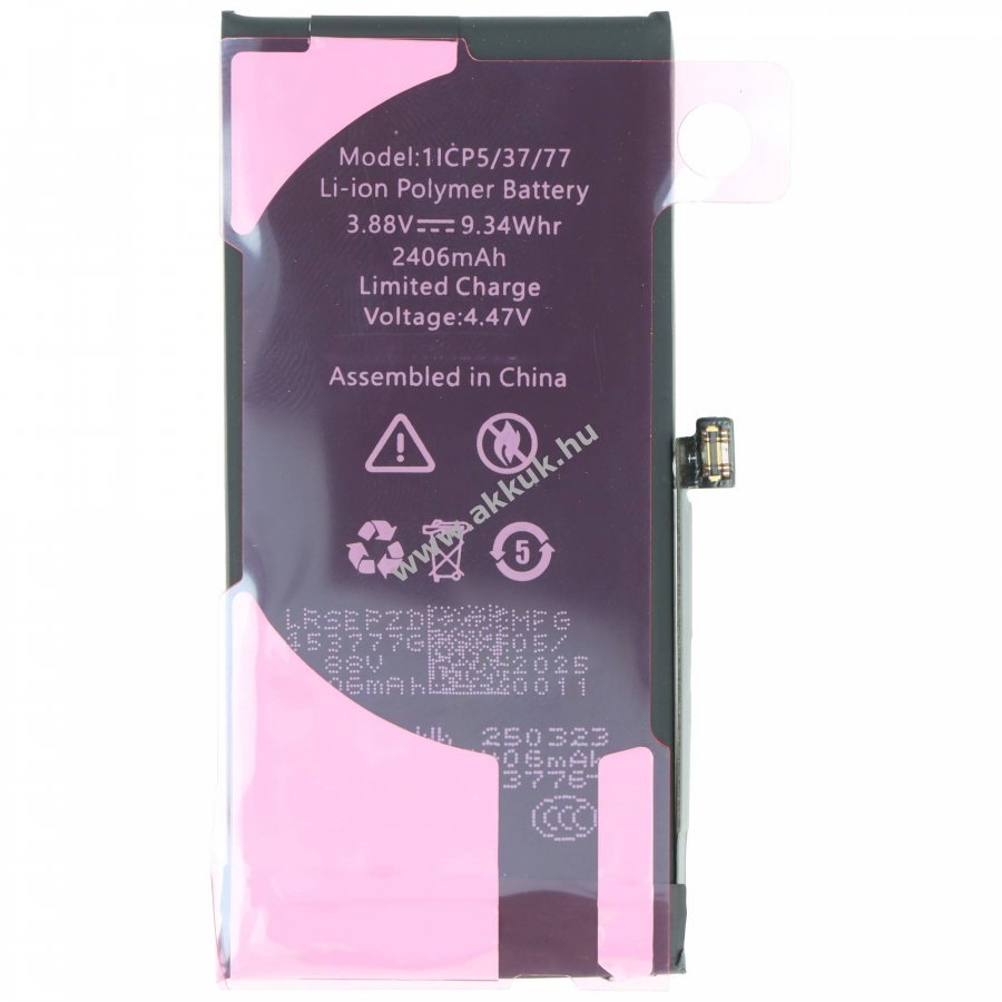 Helyettesítő akku Apple iPhone 13 Mini 3,88V 2406mAh Li-Polymer