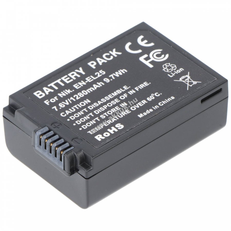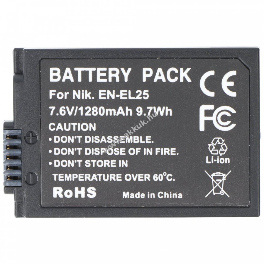 Minőségi akkumulátor Nikon EN-EL25 típusú készülékekhez, mint a Nikon Z50 és Z FC. Beépített védelem túlterhelés, túlmelegedés és rövidzárlat ellen. Kompatibilis a gyári töltőkkel. Méretei 51 x 34 x 18 mm, súlya 53 g. Nem eredeti gyári akkumulátor.