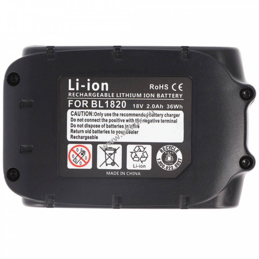 Ez az akkumulátor kompatibilis a Makita BL1815, BL1820, BL1820B, BL1830, BL1840, BL1850, BL1850B típusokkal. Kiváló minőségű kínai gyártású Li-ion akku, amely beépített védelemmel rendelkezik túlterhelés, mélykisülés, túlmelegedés és rövidzárlat ellen. Az akkumulátor 18V feszültségű, 2000mAh kapacitású, és akár 270 Makita készülékben használható. Méretei kb. 115x75x45 mm. Megfelelő választás hobbi és profi felhasználóknak egyaránt, eredeti Makita töltőkkel kompatibilis.