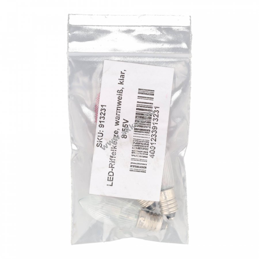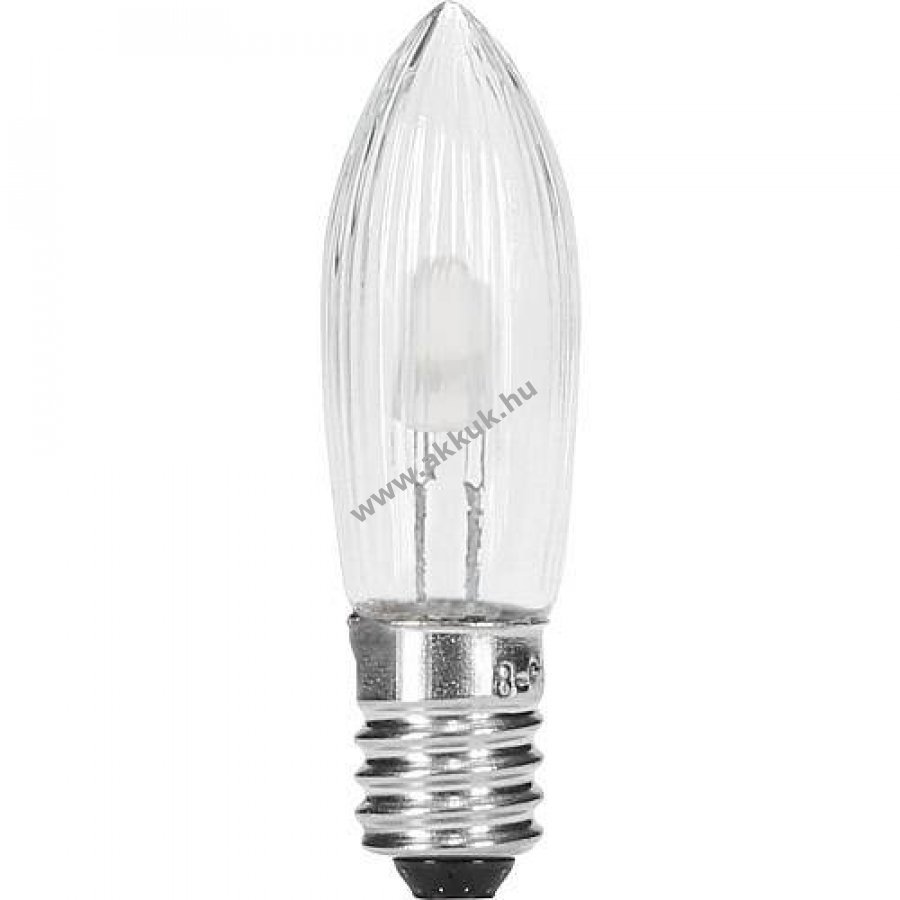 3db/csomag hellum LED bordázott topgyertya beltéri használatra, tiszta búra, melegfehér fény univerzális 8-55V feszültség, 0,1-0,5W teljesítmény, E10 foglalat. Modell 913231. Szállítás elemek nélkül történik.