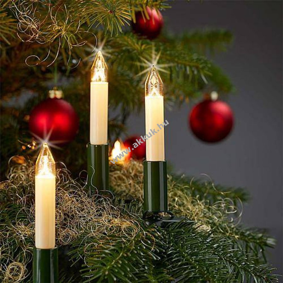 Hellum LED gyertyafüzér kültéri és beltéri használatra elefántcsont gyertyatestekkel és melegfehér LED-ekkel.